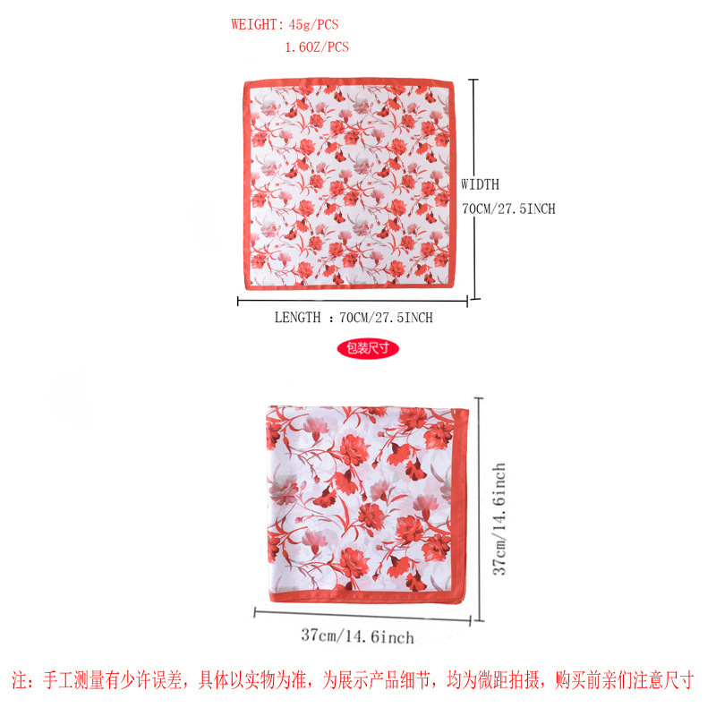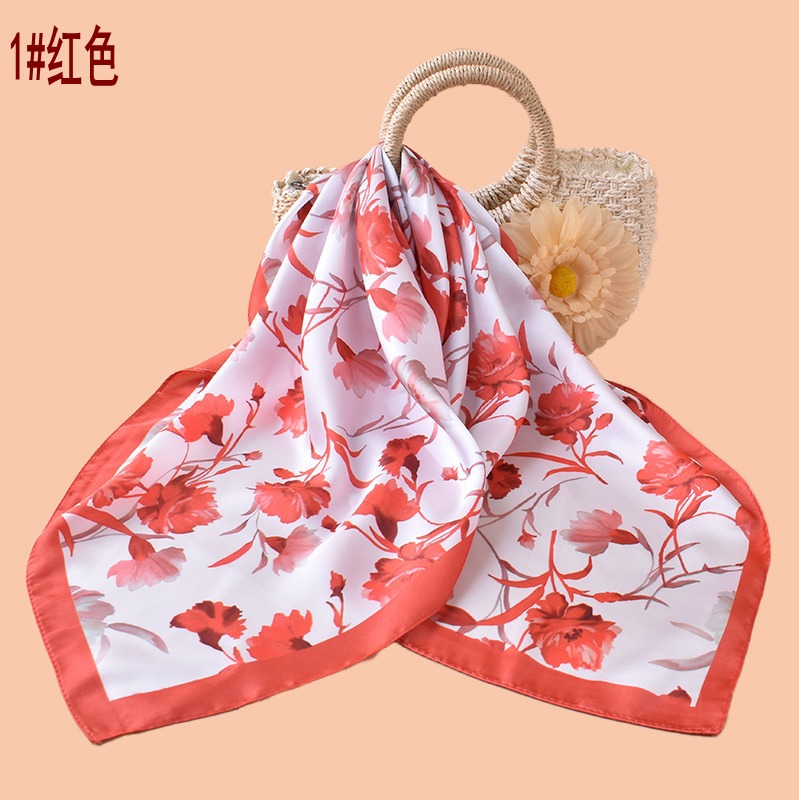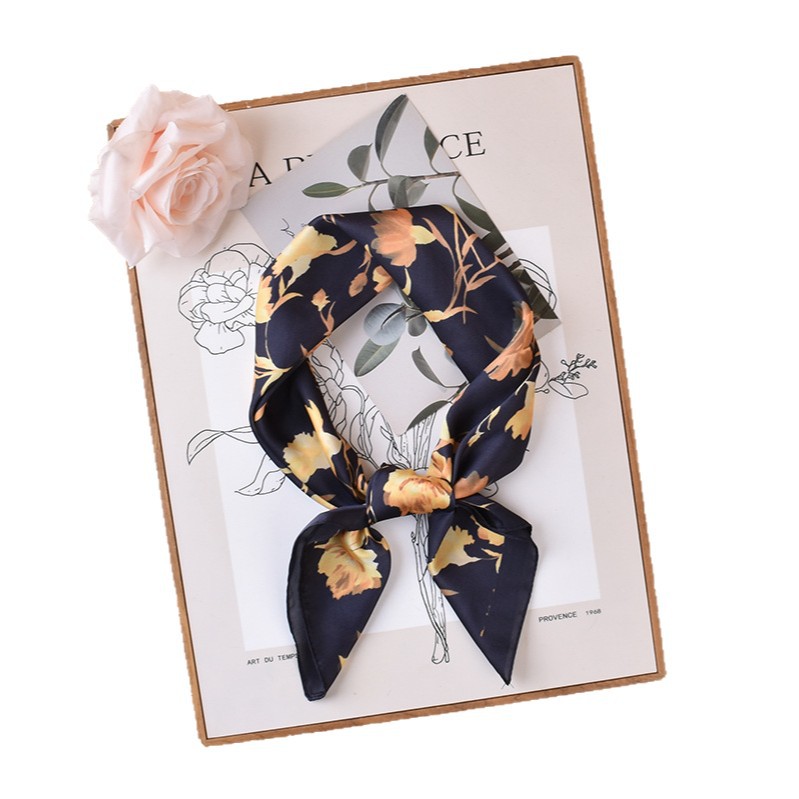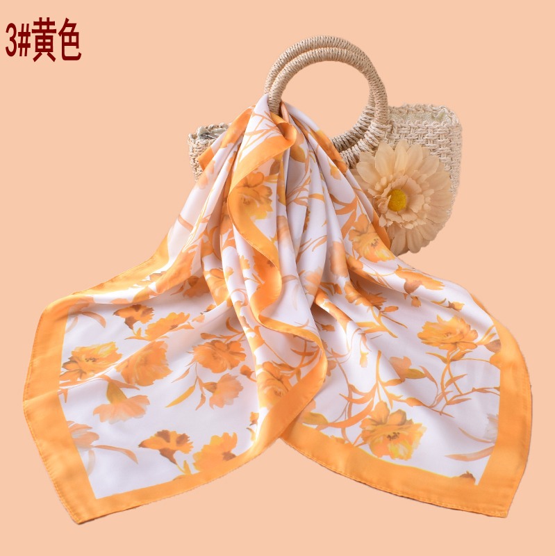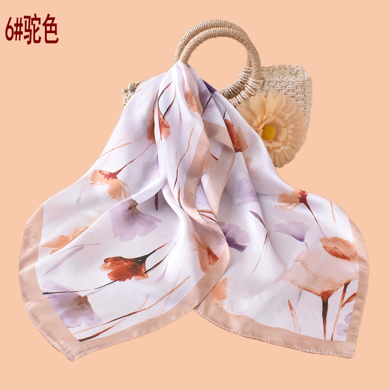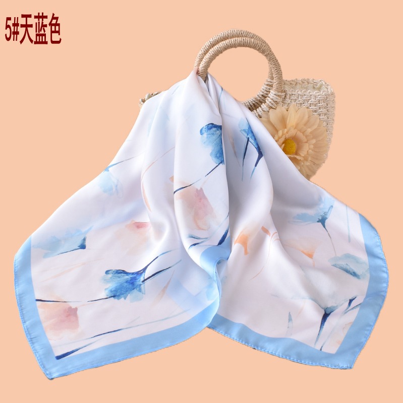 new style women’s 70cm square scarf, elegant retro watercolor print silk scarf in satin chiffon—wholesale from the factory direct