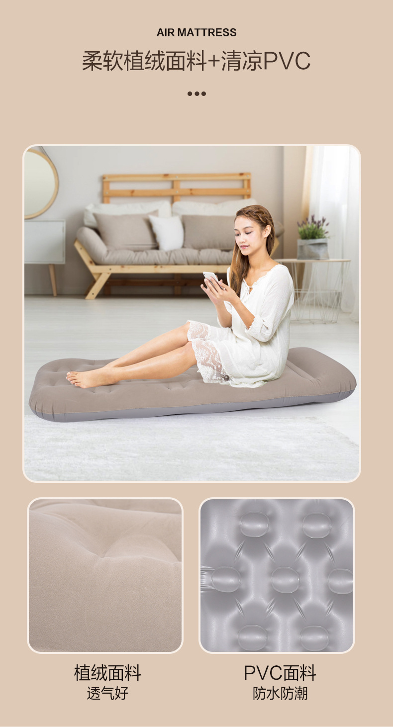 khaki single short airbed 190x100x25cm