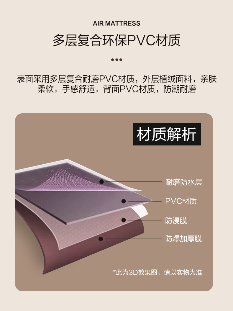 khaki three-person height airbed 200x180x40cm