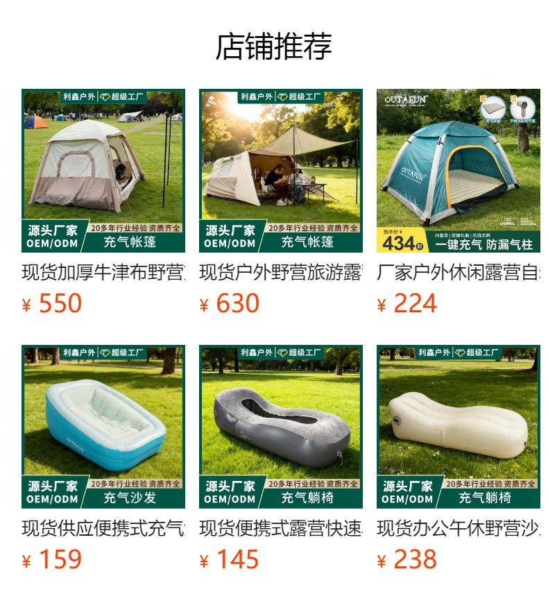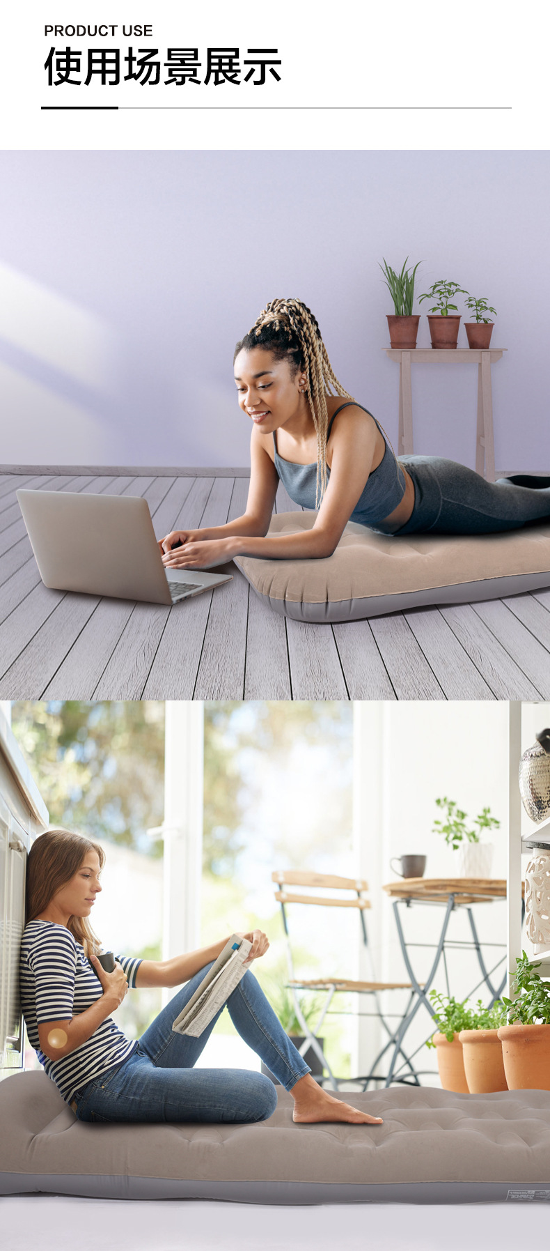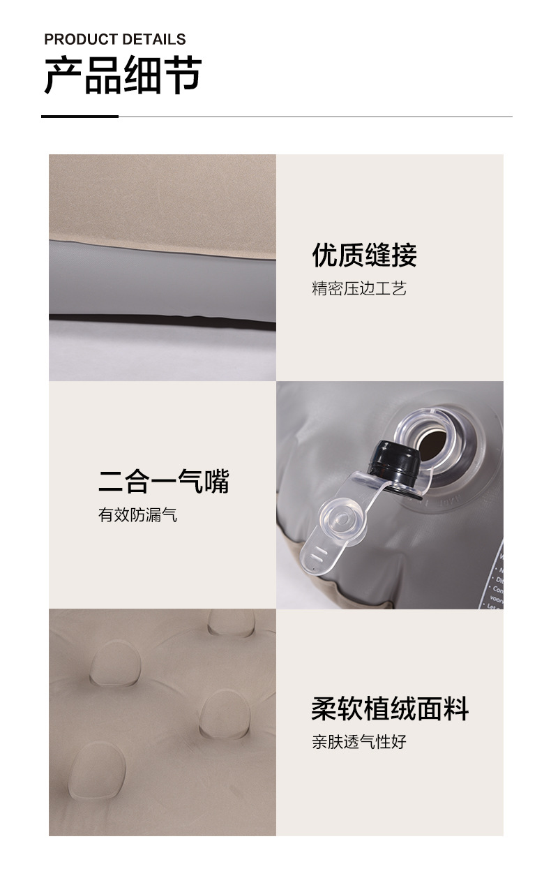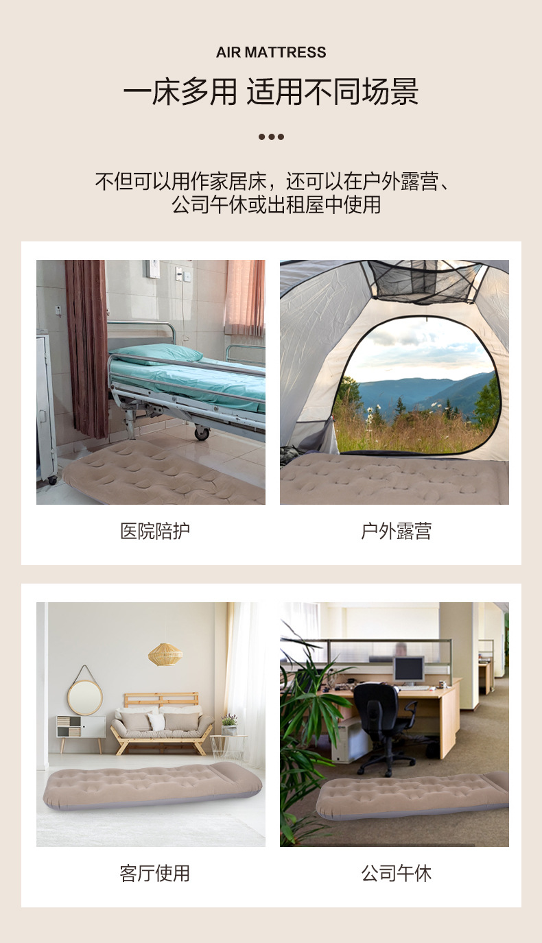khaki three-person short airbed 200x180x25cm
