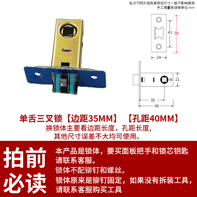 三叉静音-锁边距44-46