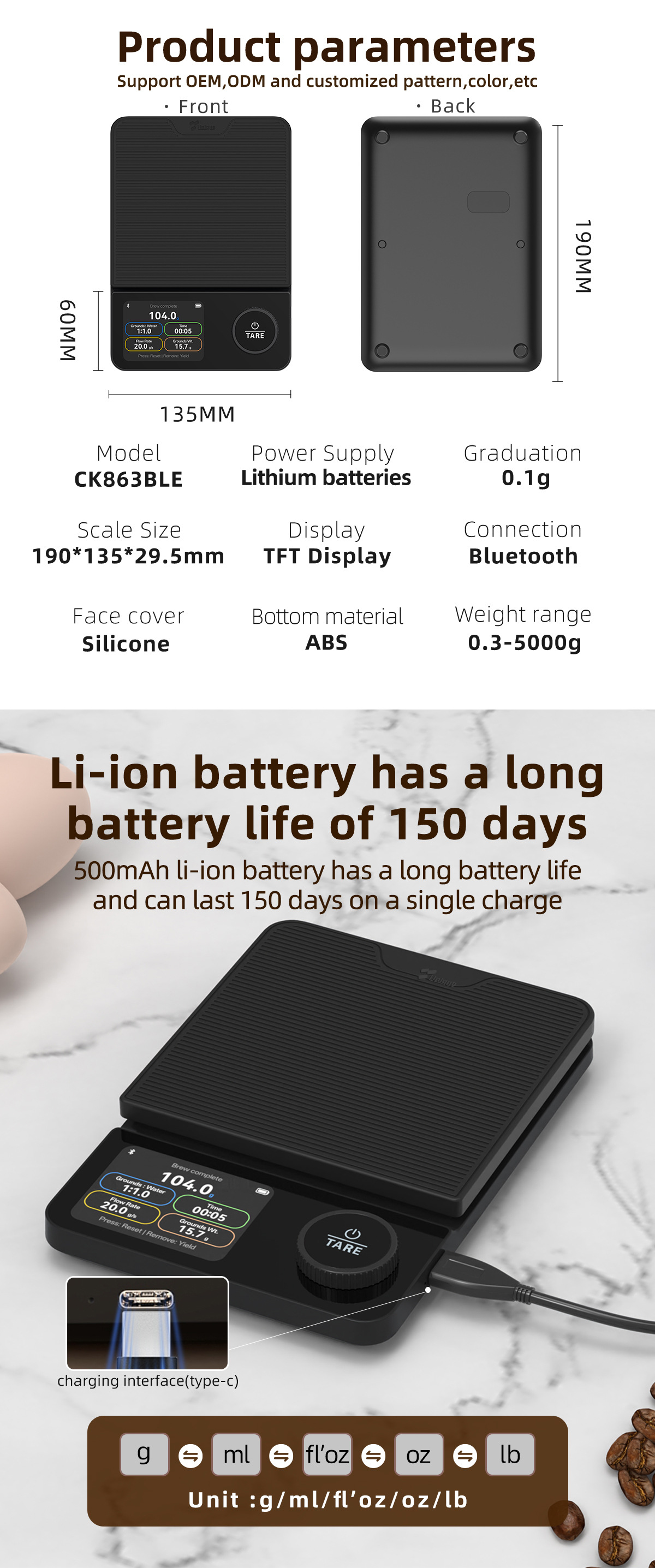 coffee scale-rechargeable-ck863ble (english-language export model; please think twice before placing an order if you mind)