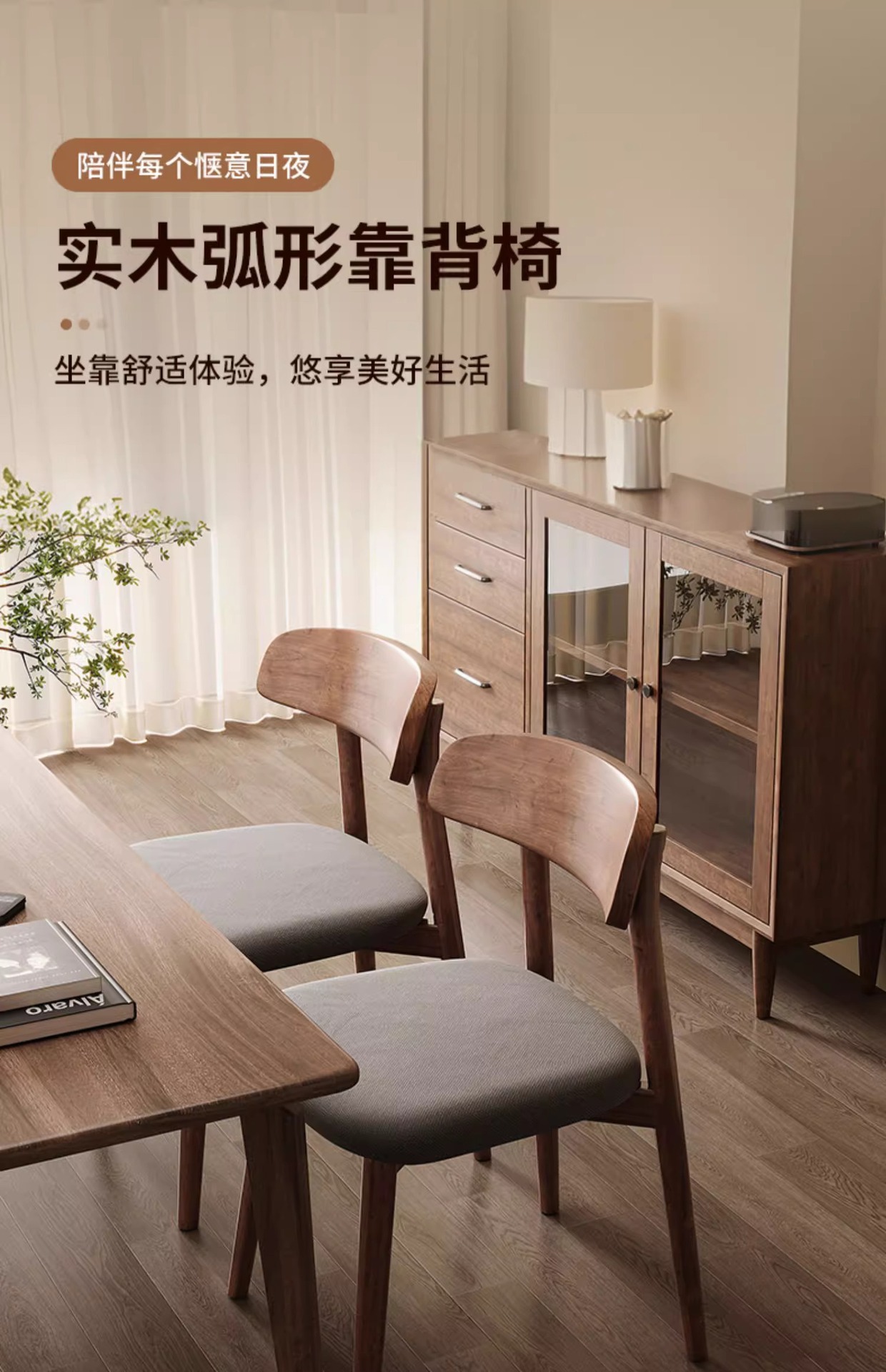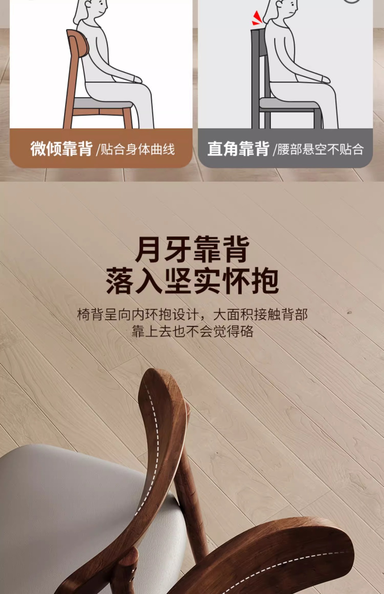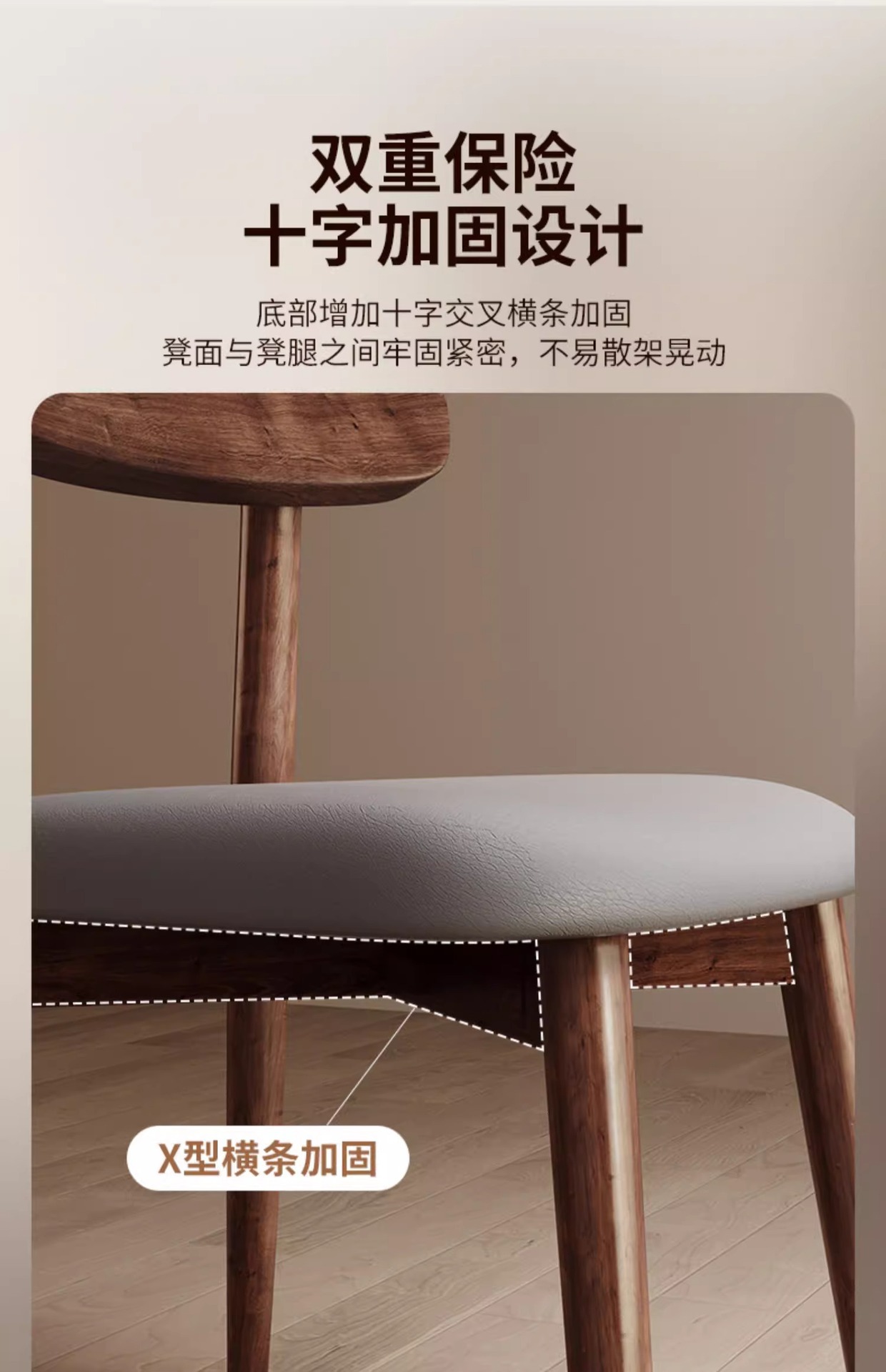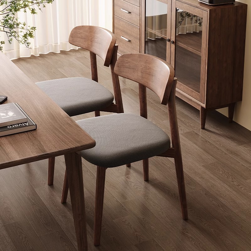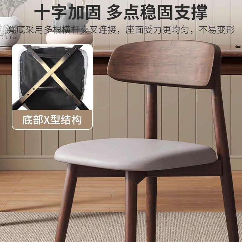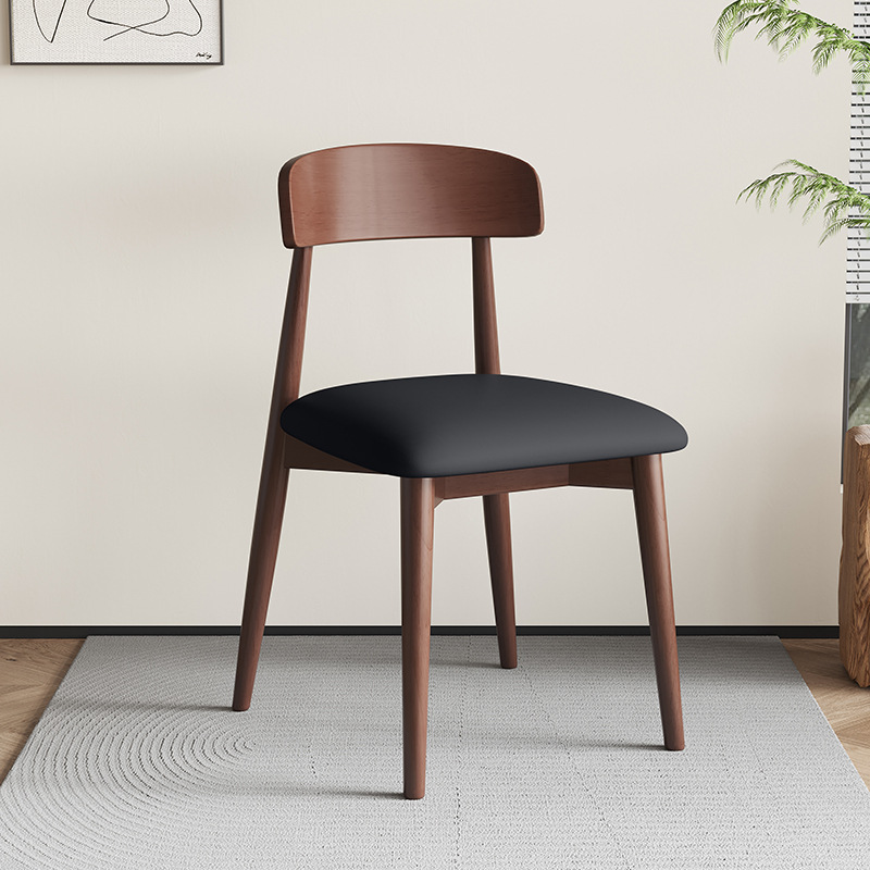 walnut frame + wooden seat board, walnut frame + black leather seat
