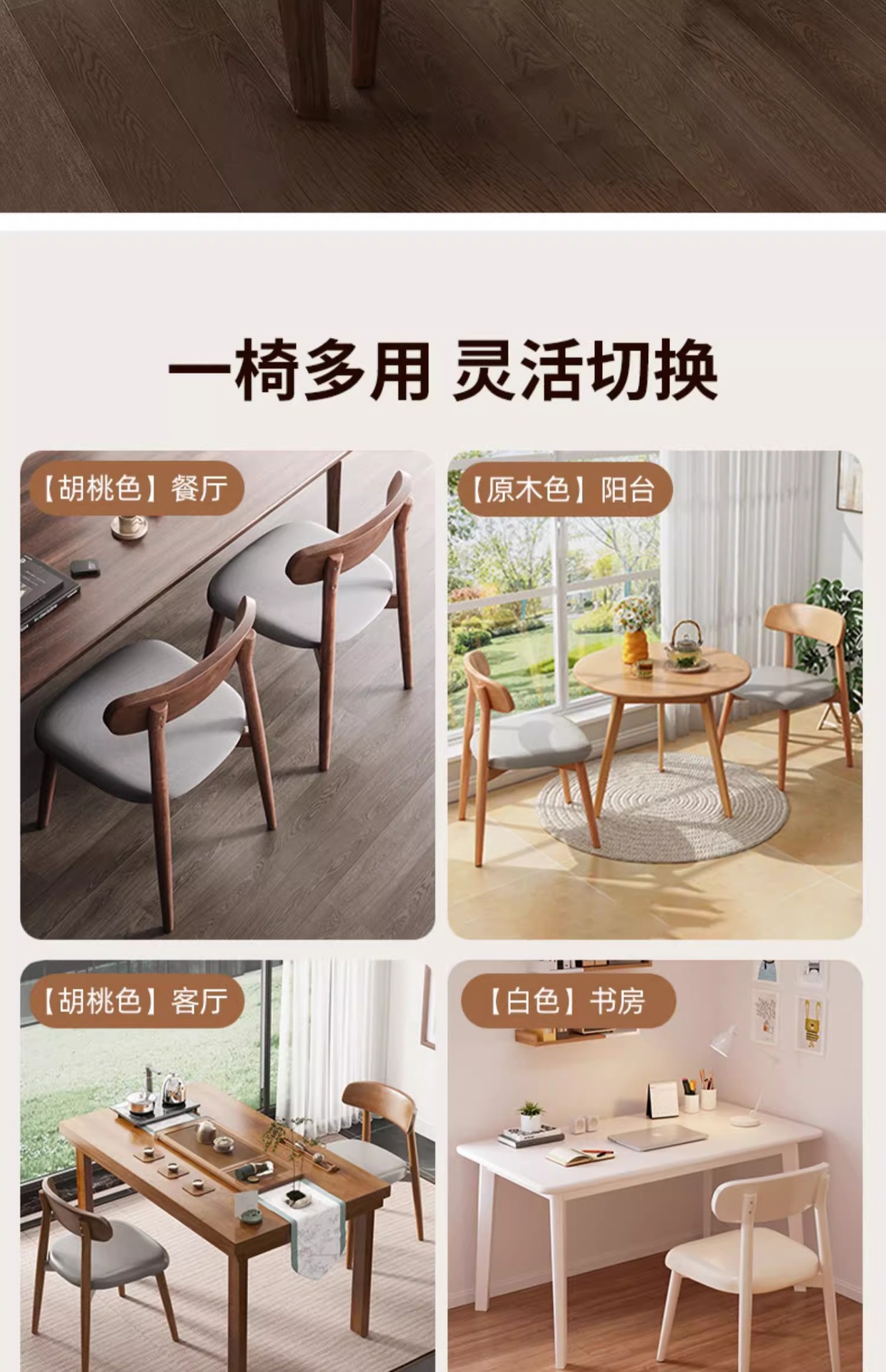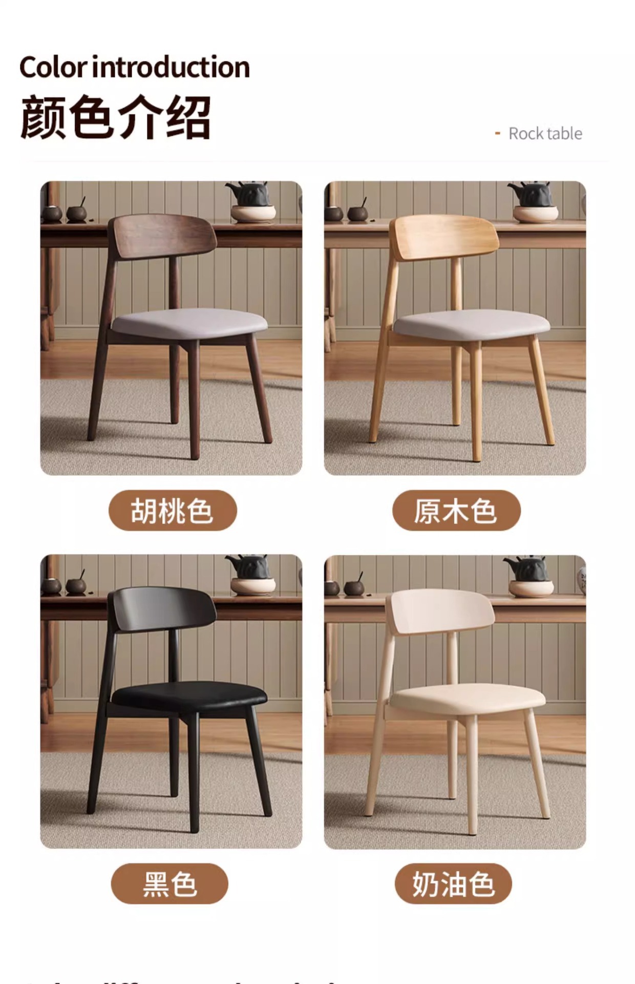 color: walnut frame + wooden seat board, walnut frame + black leather seat