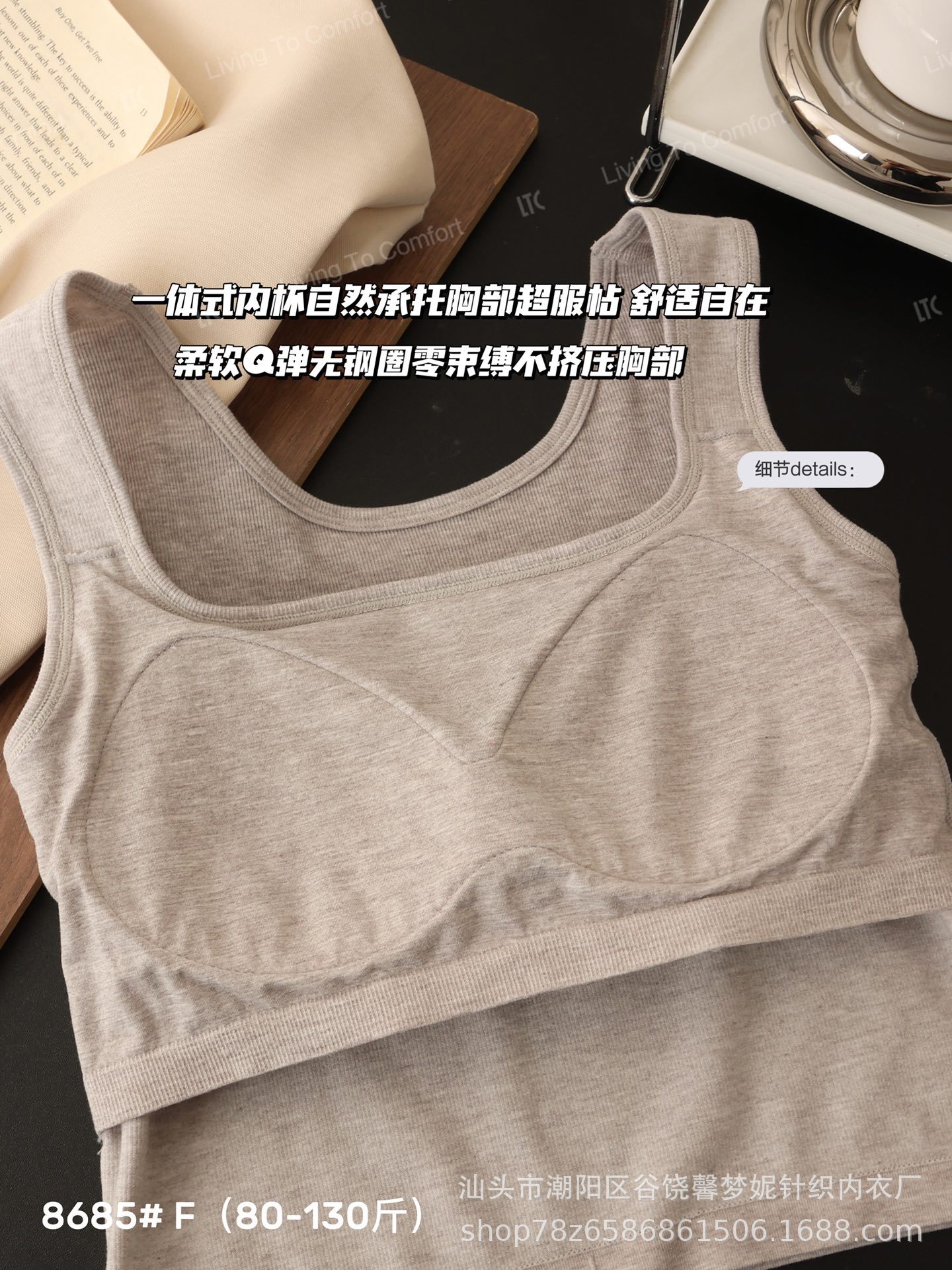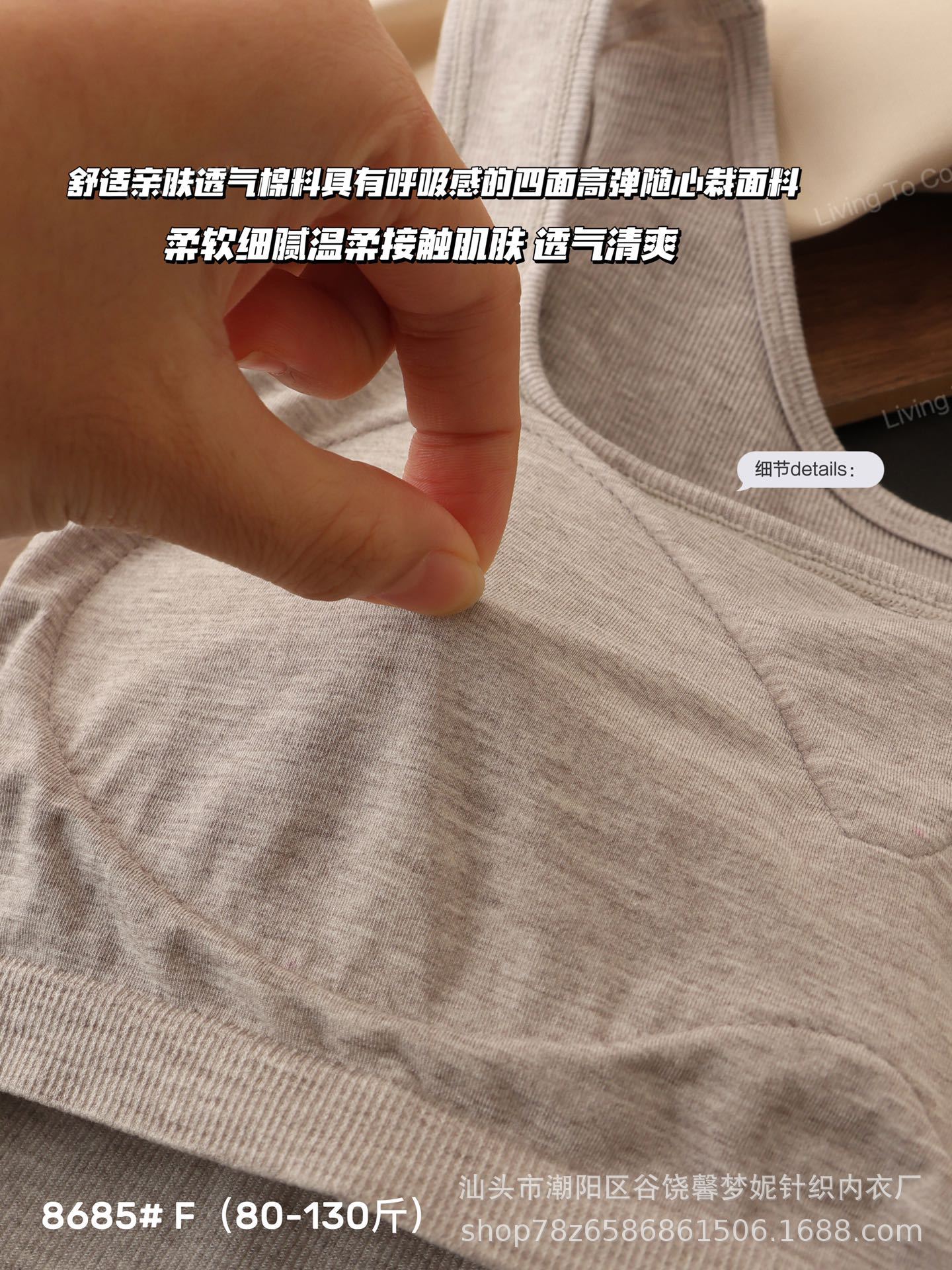 style details: cotton cushion, seamless/one-piece