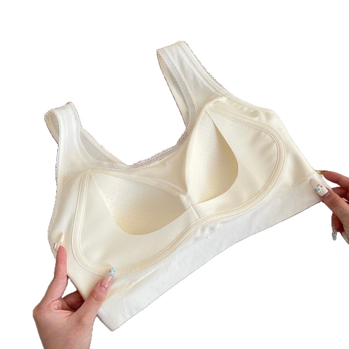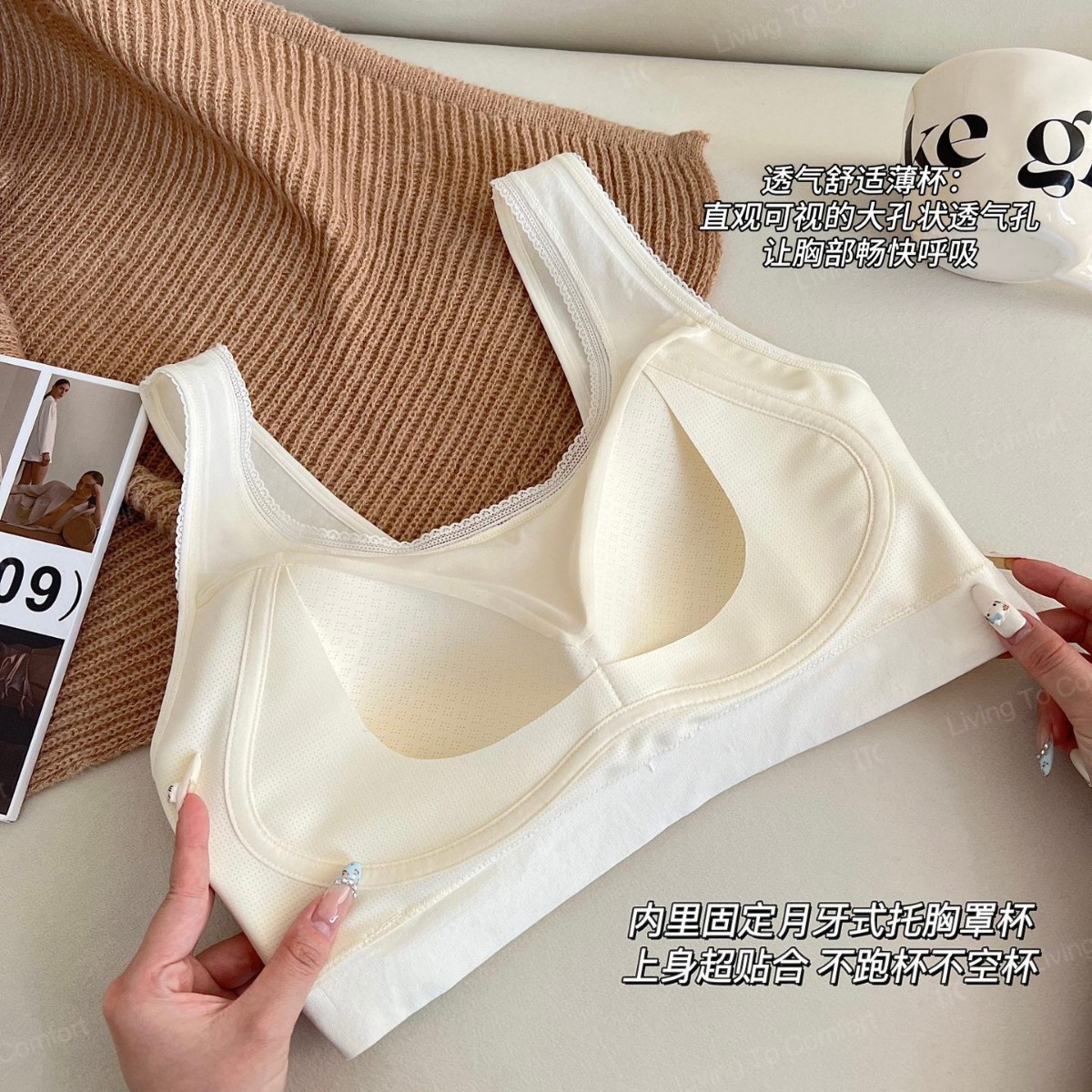 The bra cup is covered with honeycomb ventilation holes, providing breathable and non-stuffy fit.