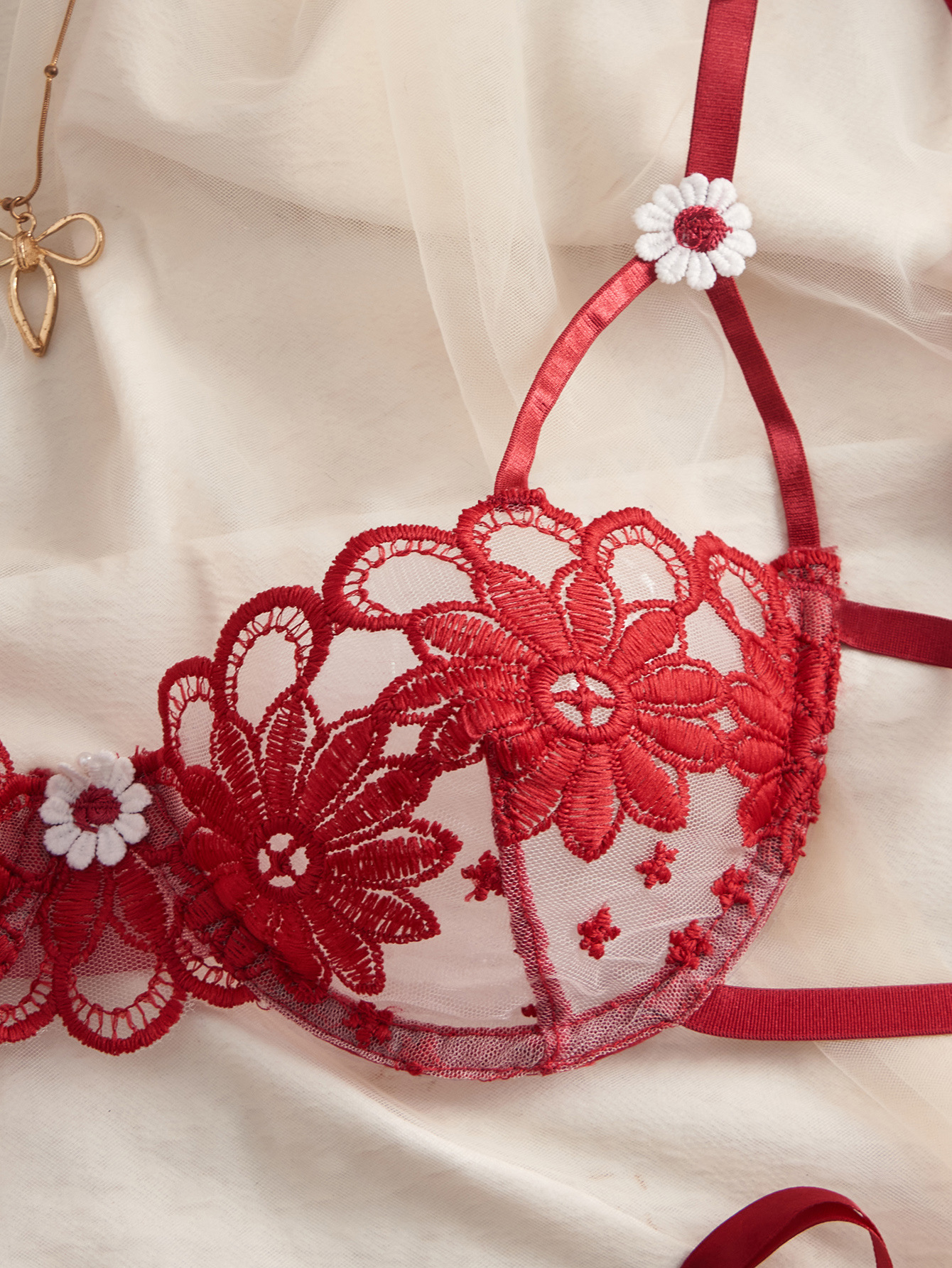 cross-border foreign trade best seller in europe and america underwired gathering bra japanese style floral embroidery sheer lace strappy panties sexy suit