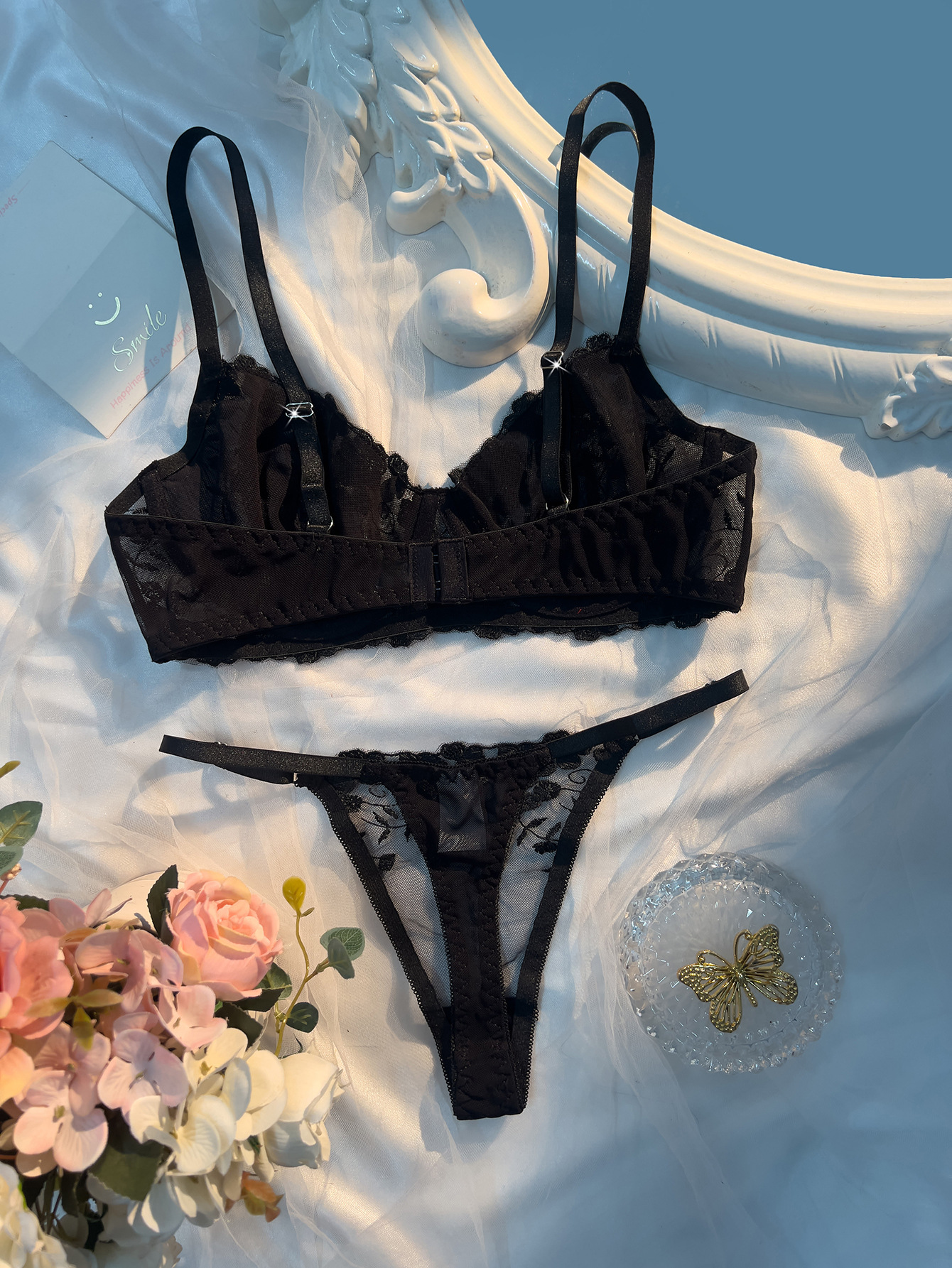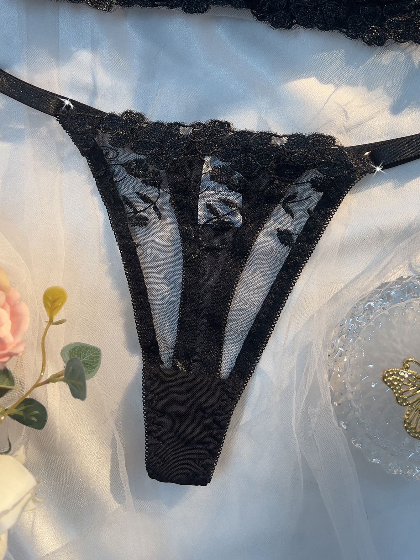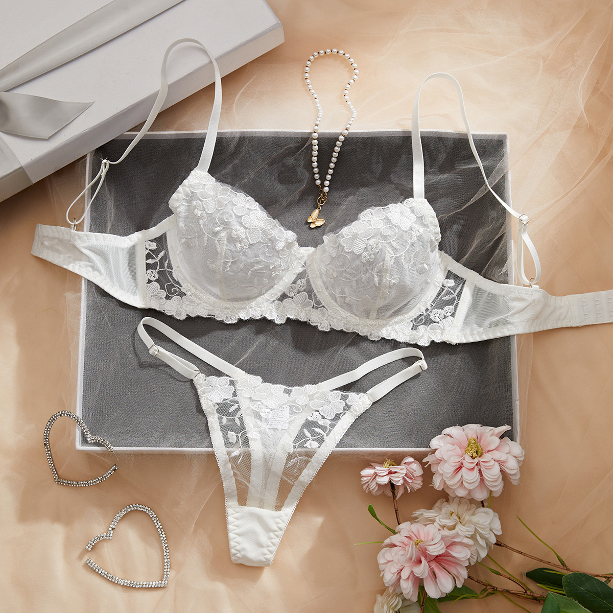 three-point, low cut underclothes, see-through dress