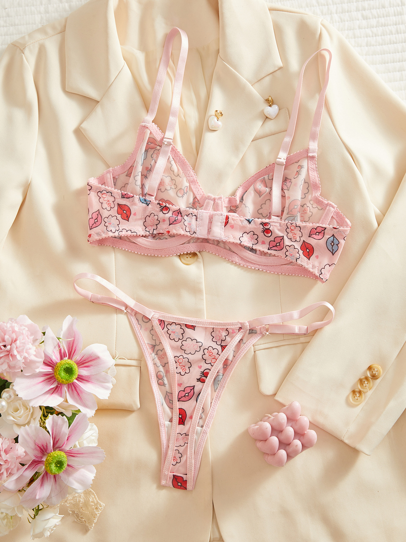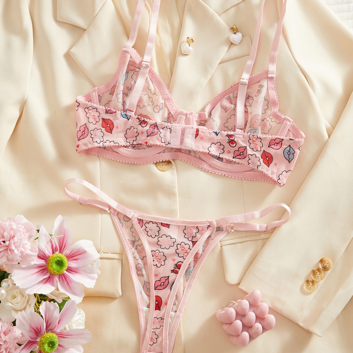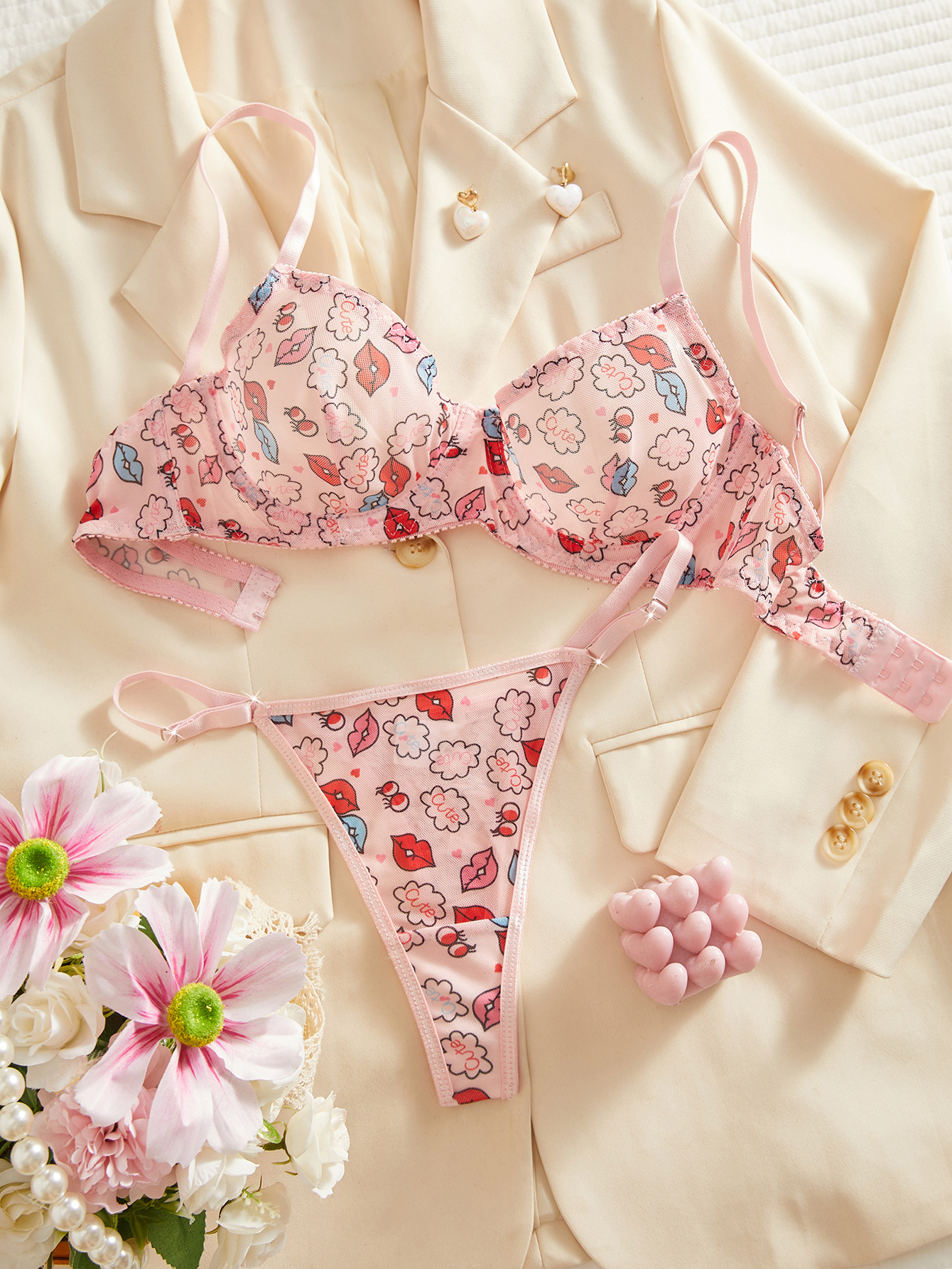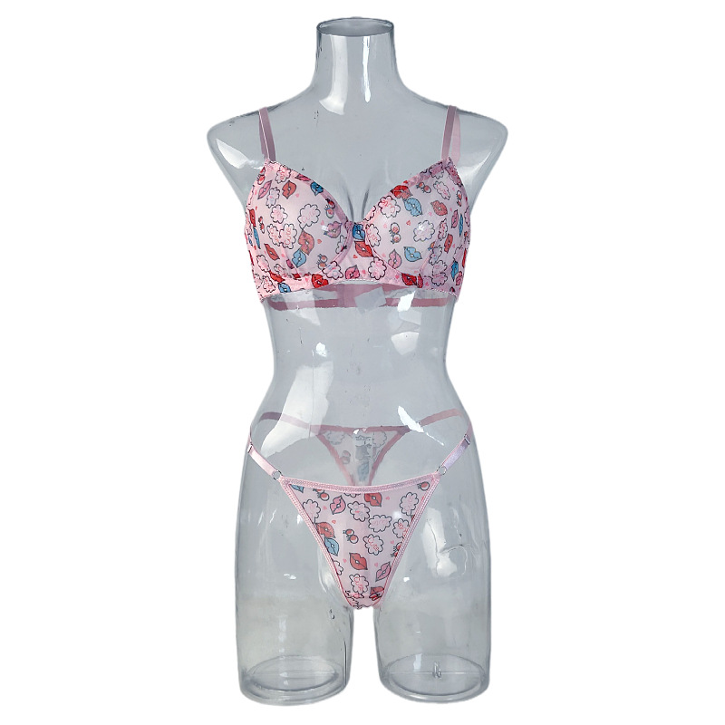 cross-border european and american sexy underwear valentine's day hot-selling funny lip print pure desire alluring t-back sexy suit