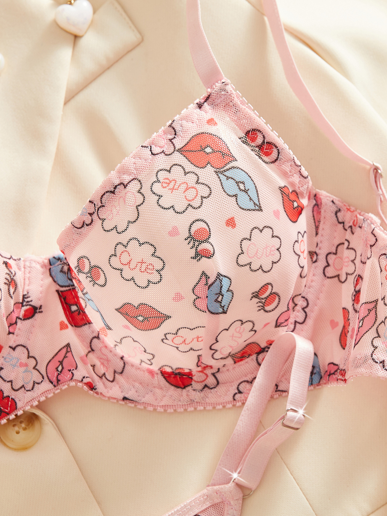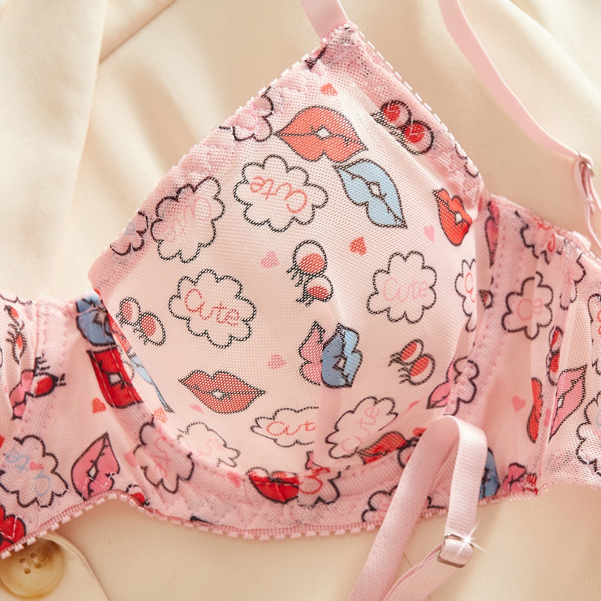 style: three-point, low cut underclothes, mesh