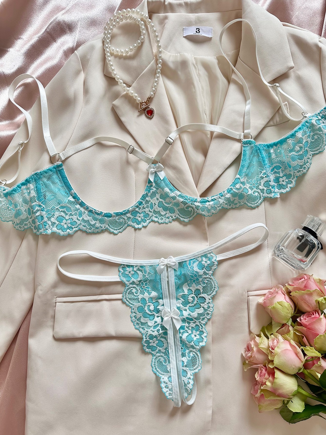 style: low cut underclothes, see-through dress