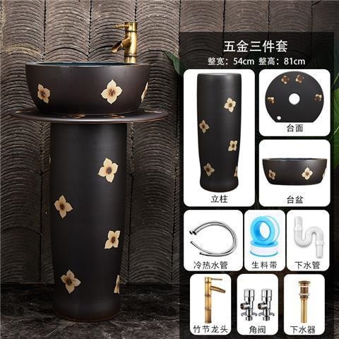 百花立柱+盆+五金套装(送龙头卡座)