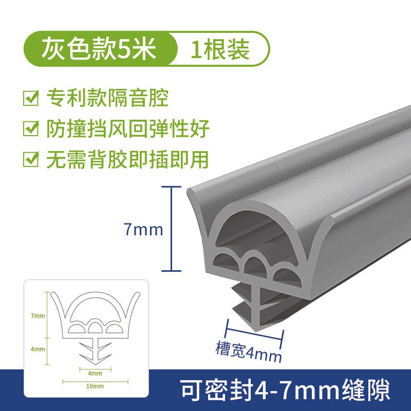 灰色【双翼D型10*7mm卡槽款*5米】
