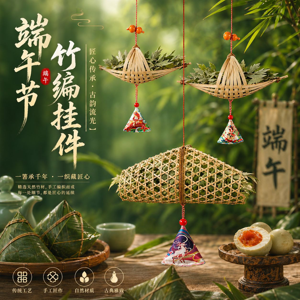 new arrival-bamboo-weaved little boat dragon boat set-green version + sachet all things zongzi meaning