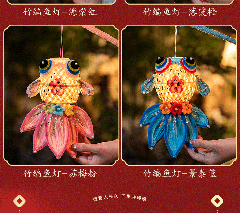diy bamboo fish-shaped lantern-begonia red-vertical style