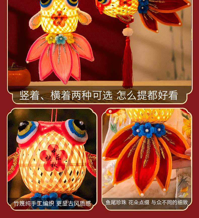 diy handheld style [lucky fish lantern-rouge red]