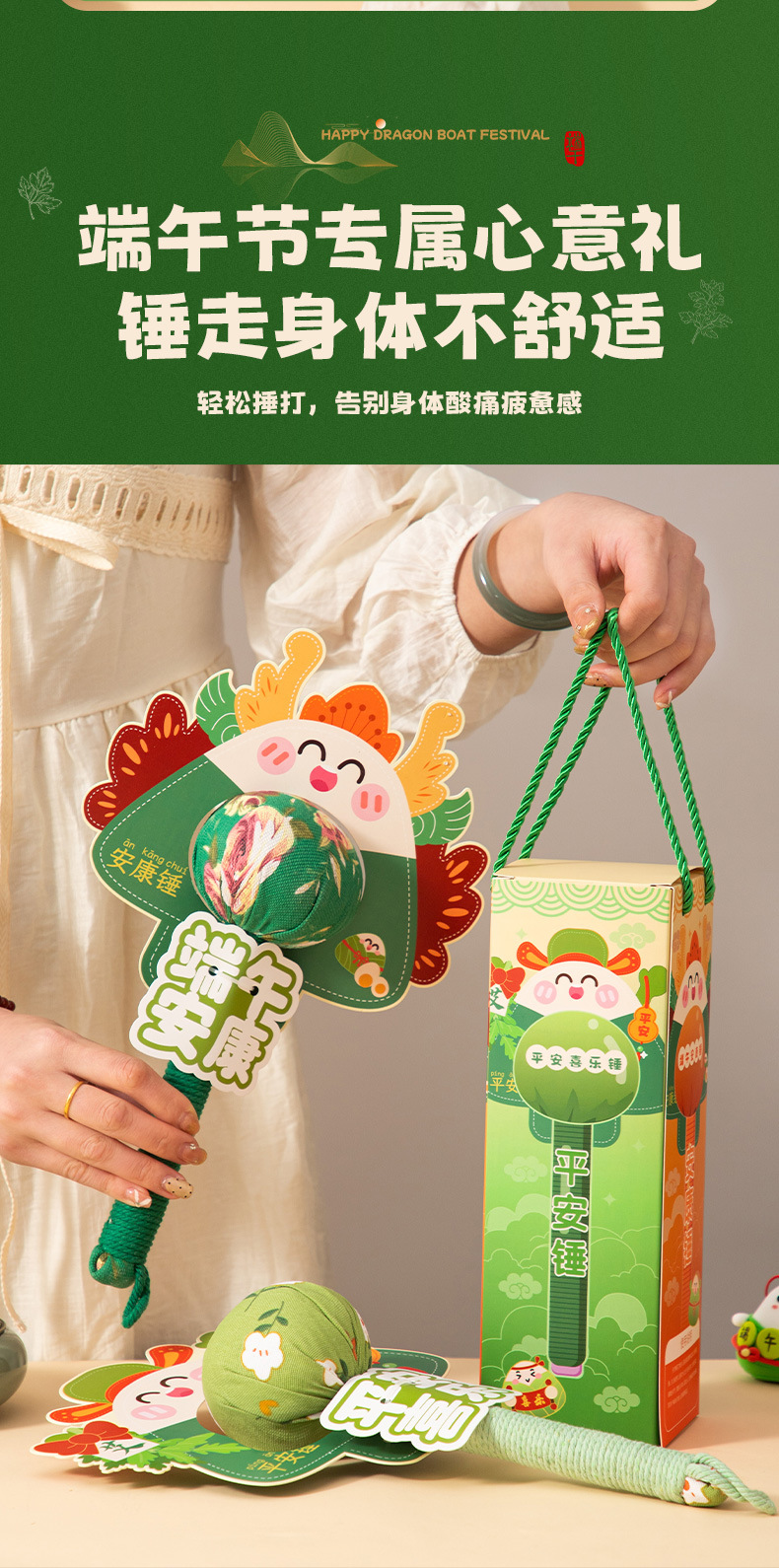 【satin green-gift box】dragon boat festival well-being argy wormwood hammer