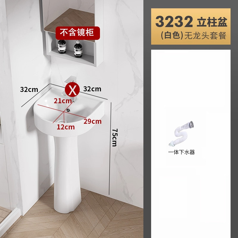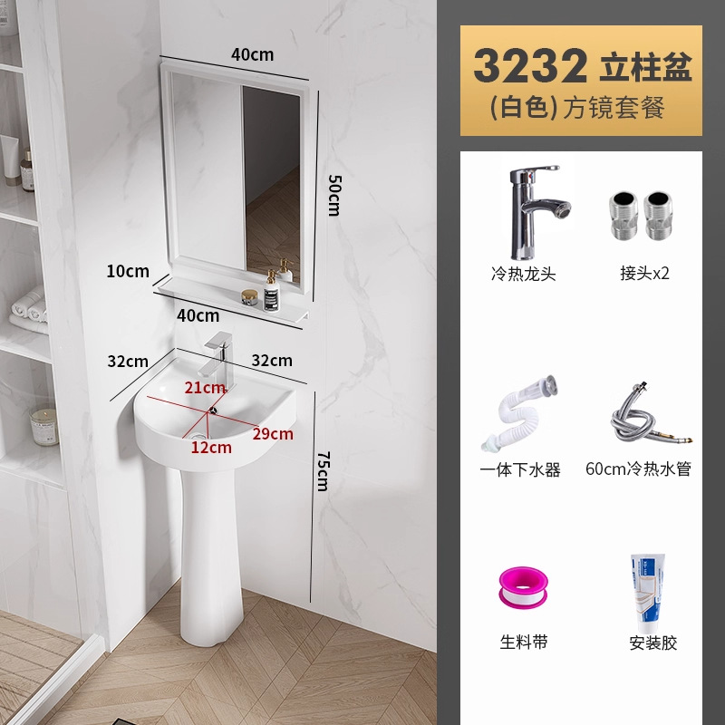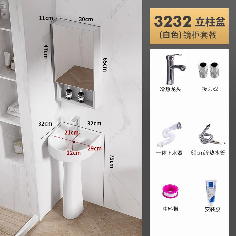 迷你3232盆柱+龙头五金+白镜柜