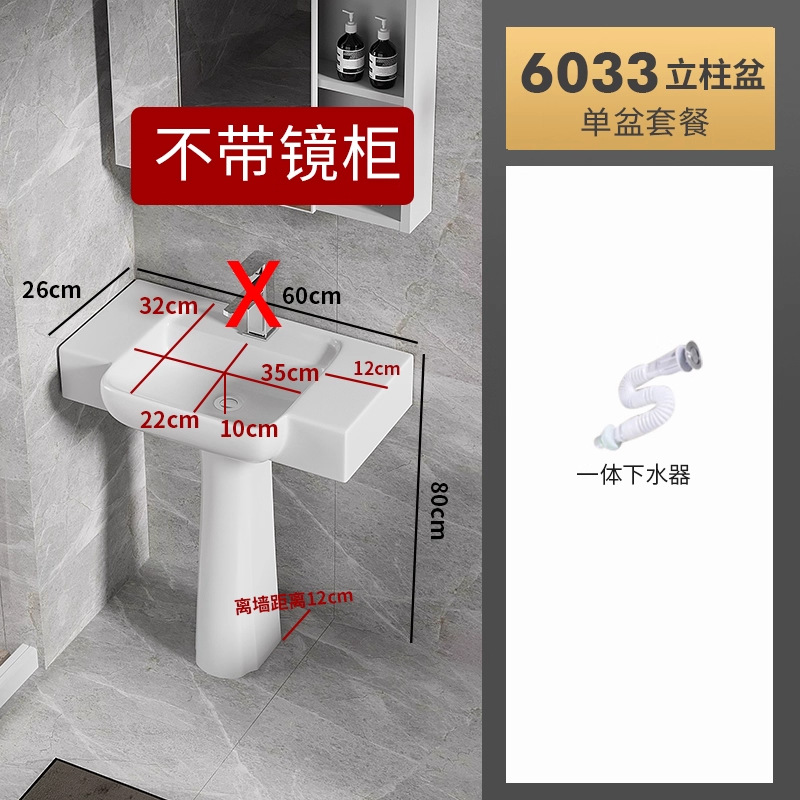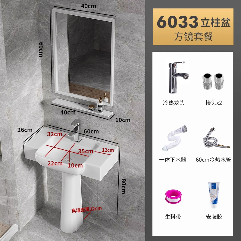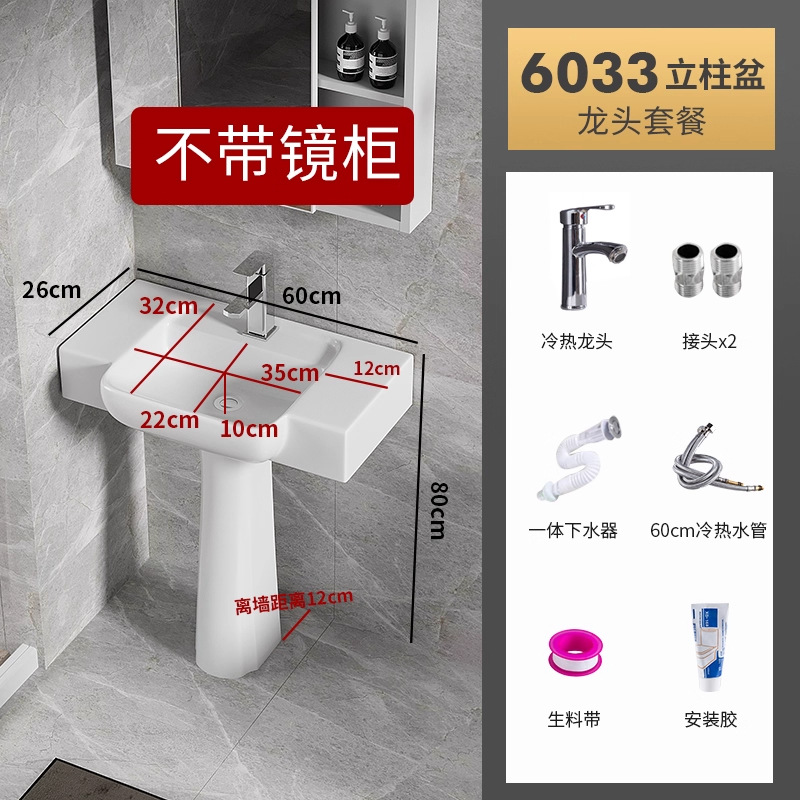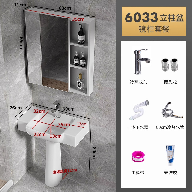 6033盆柱+龙头五金+60白镜柜