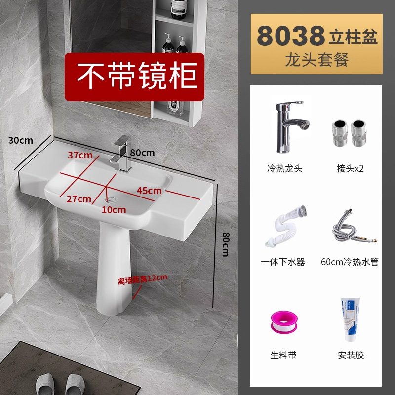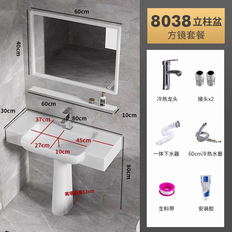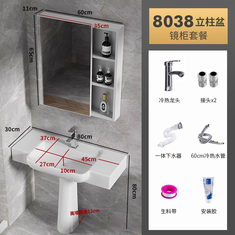 8038盆柱+龙头五金+60白镜柜
