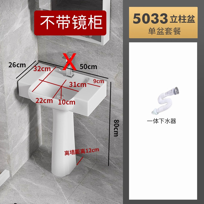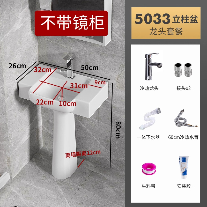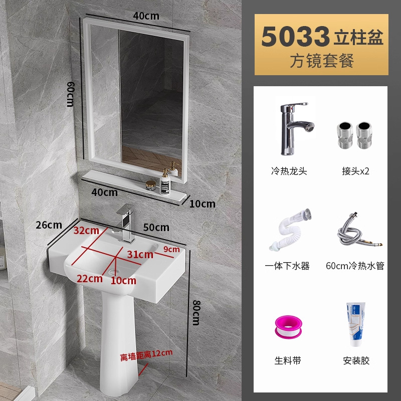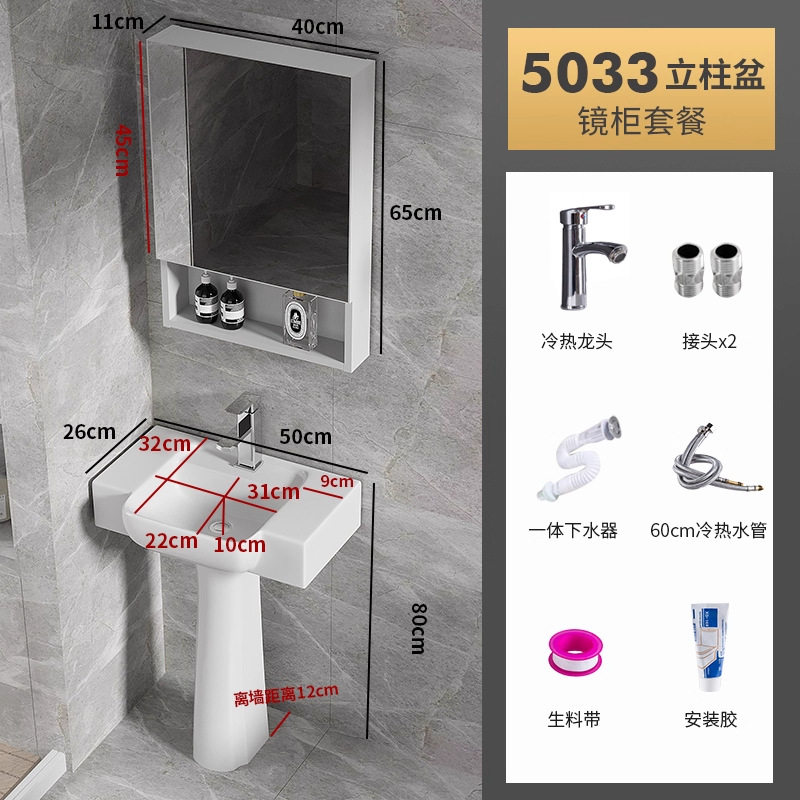 5033盆柱+龙头五金+40白镜柜