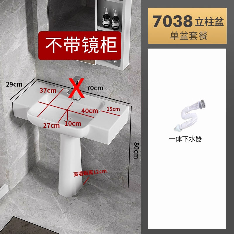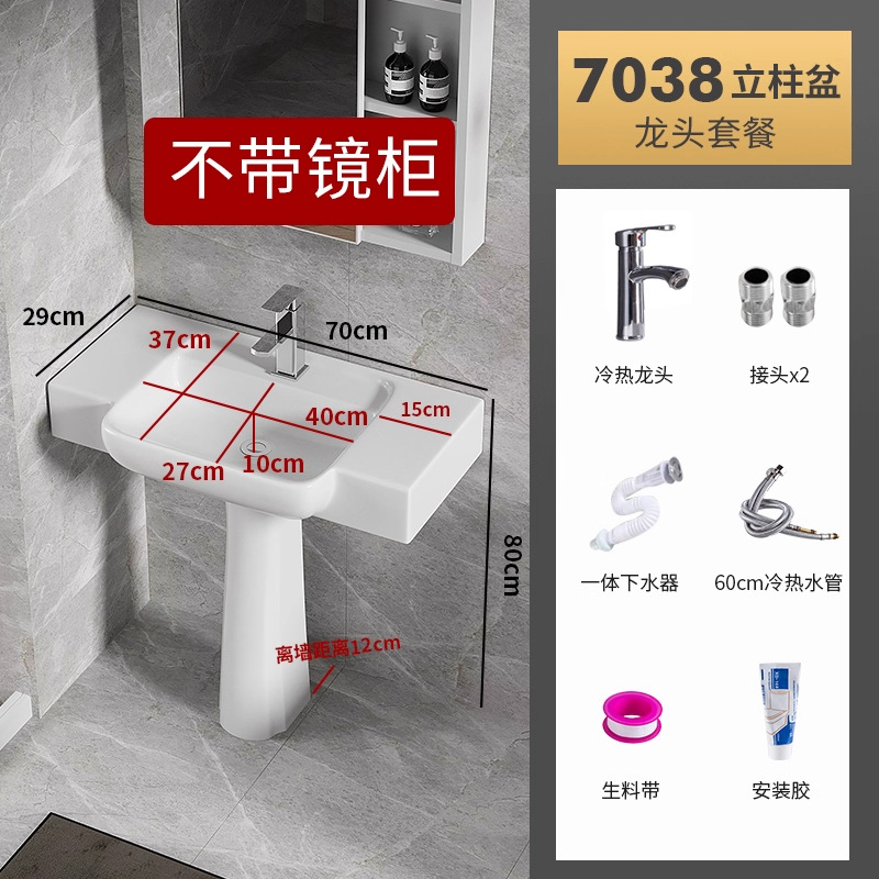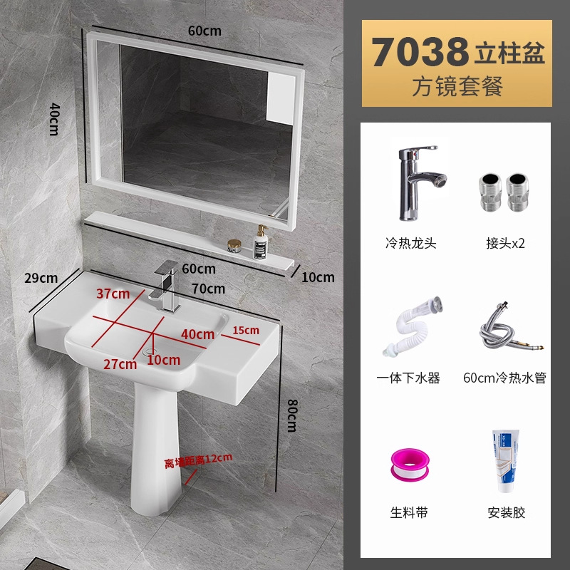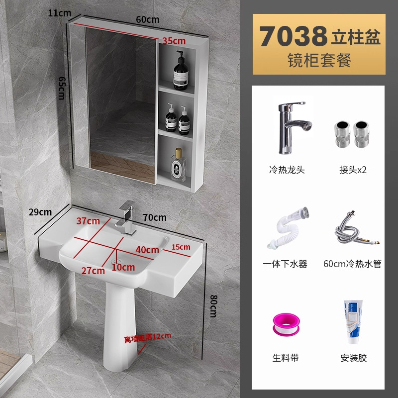 7038盆柱+龙头五金+60白镜柜