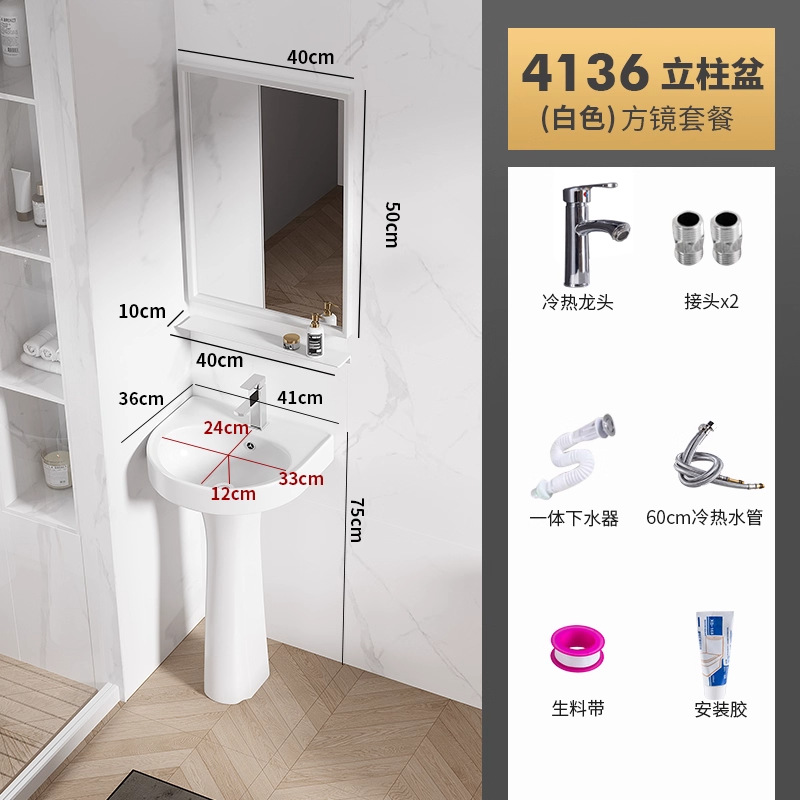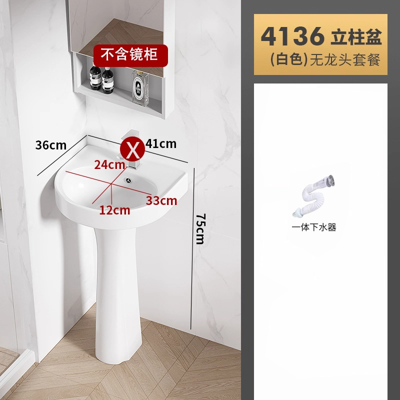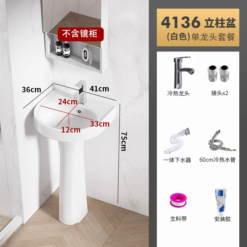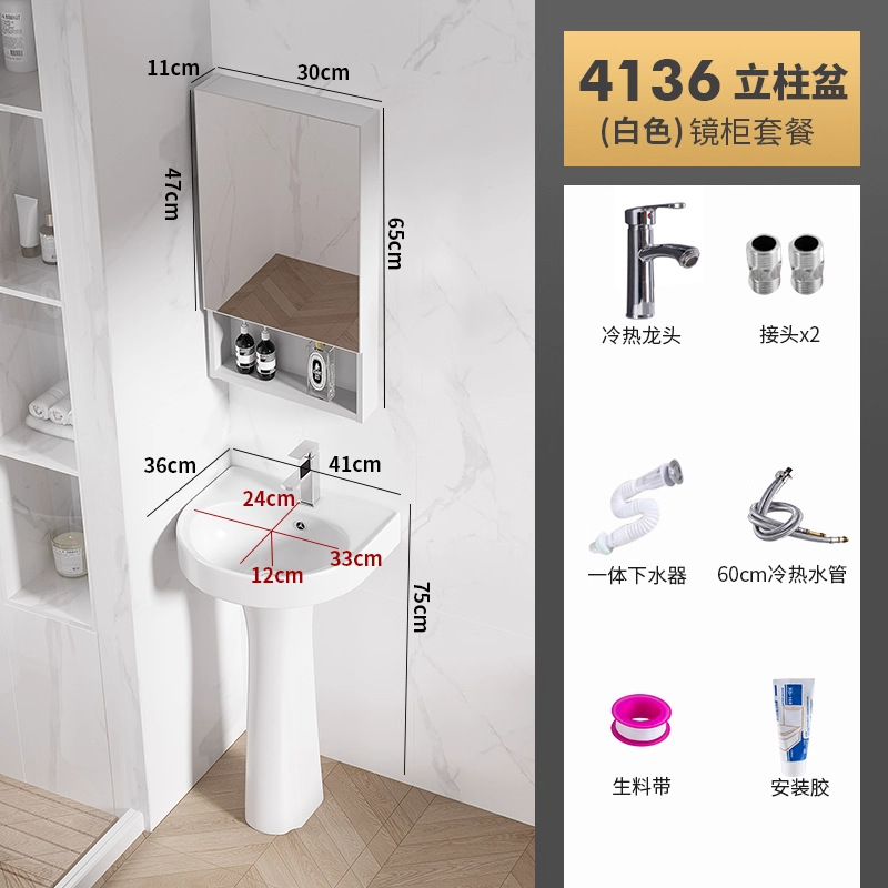 4136盆柱+龙头五金+白镜柜