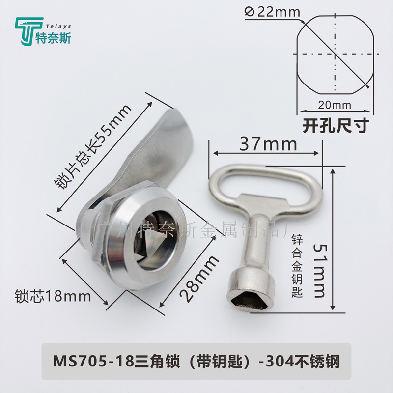MS705-18三角锁-304不锈钢【带锌合金钥匙】