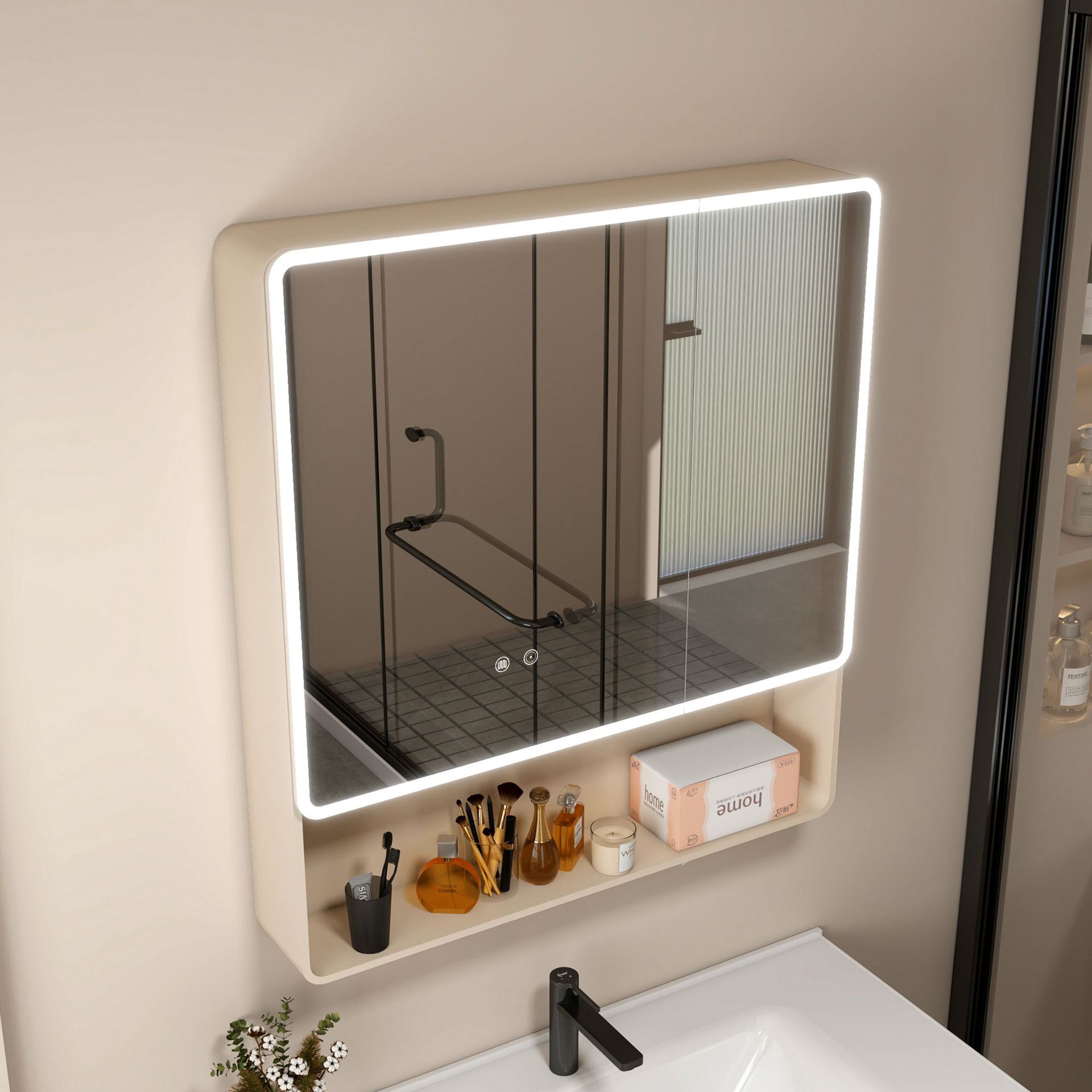 奶油色-圆弧80*88cm 美妆收纳【智能款】