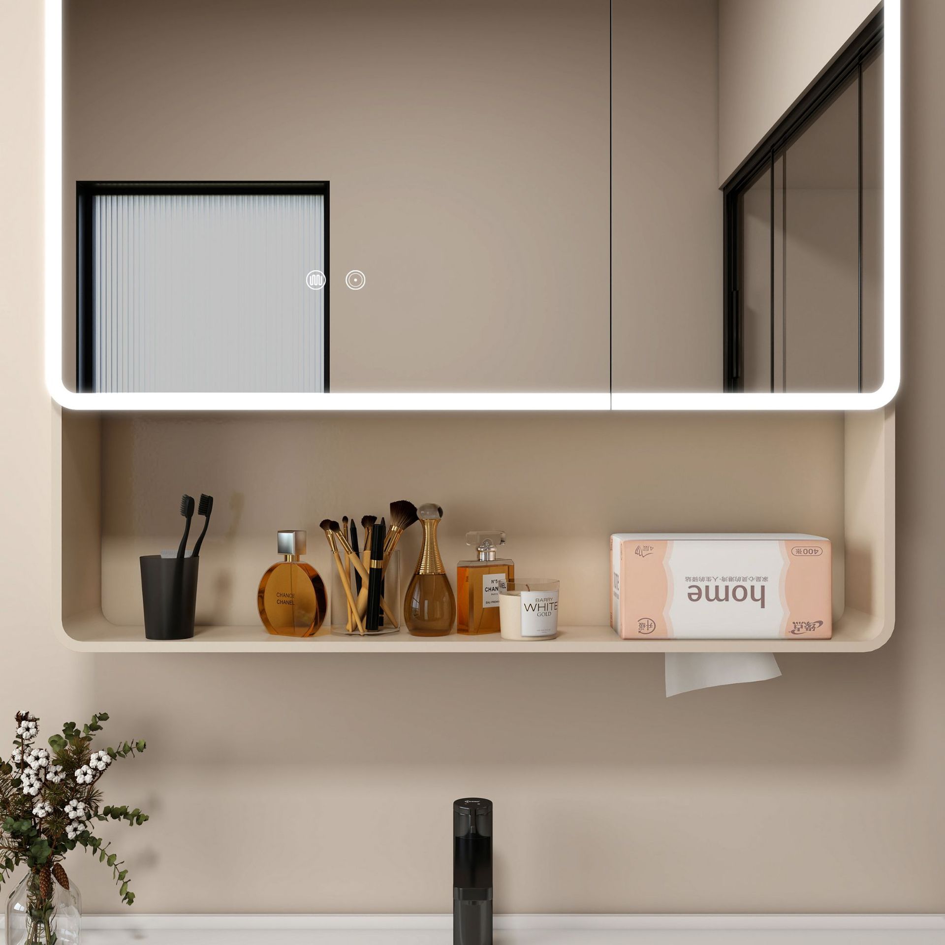 奶油色-圆弧90*88cm 美妆收纳【智能款】