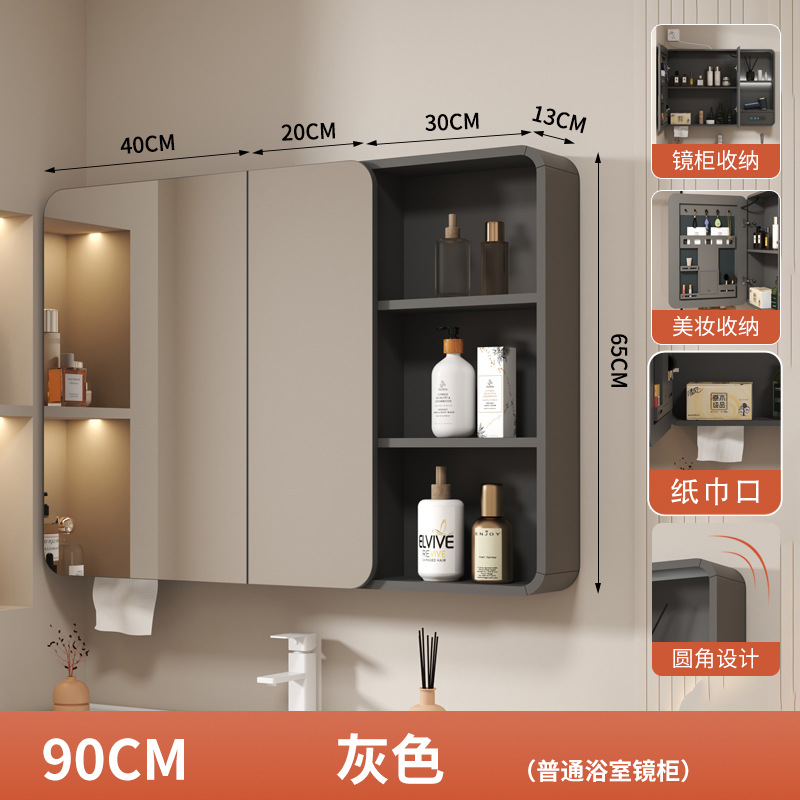 灰色90*65cm智能圆弧加厚镜柜【多功能插座】
