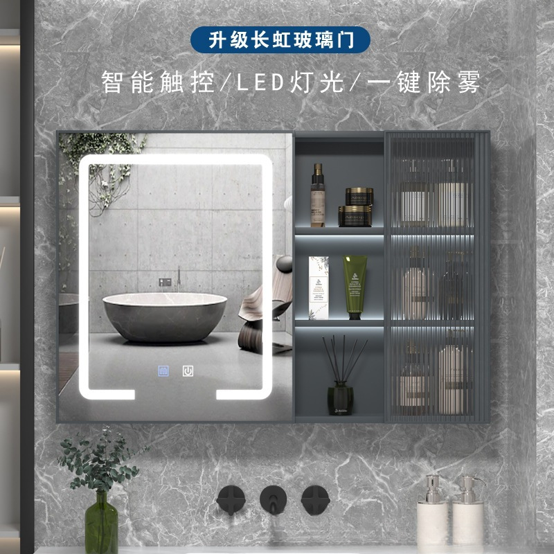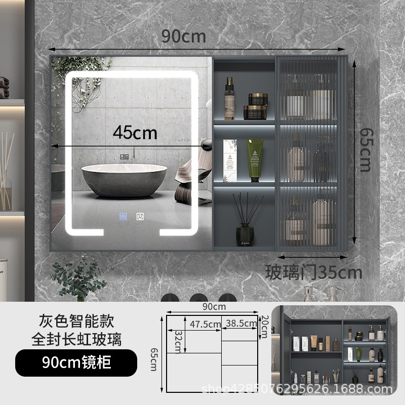 灰色90*65智能触控镜柜