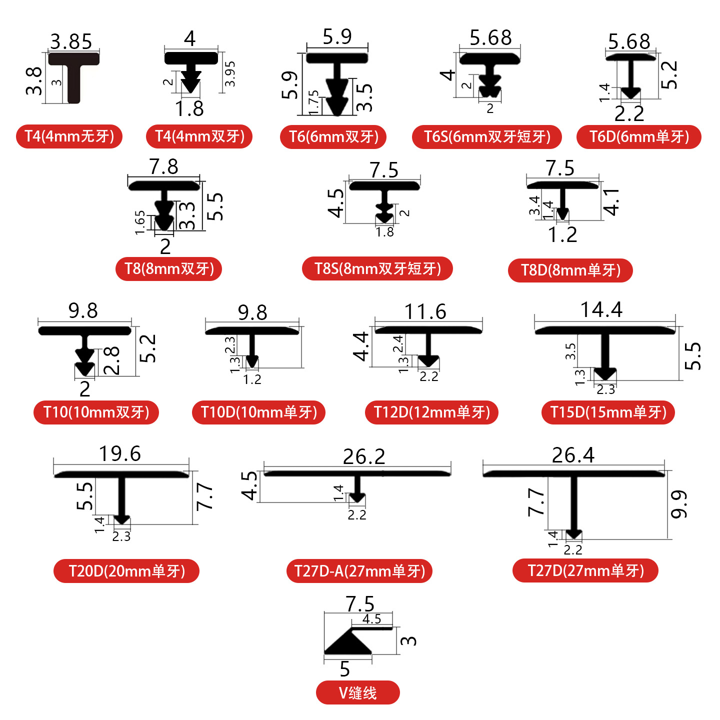 | 4mm宽T条(不带牙) | CN¥ 6.27 |
