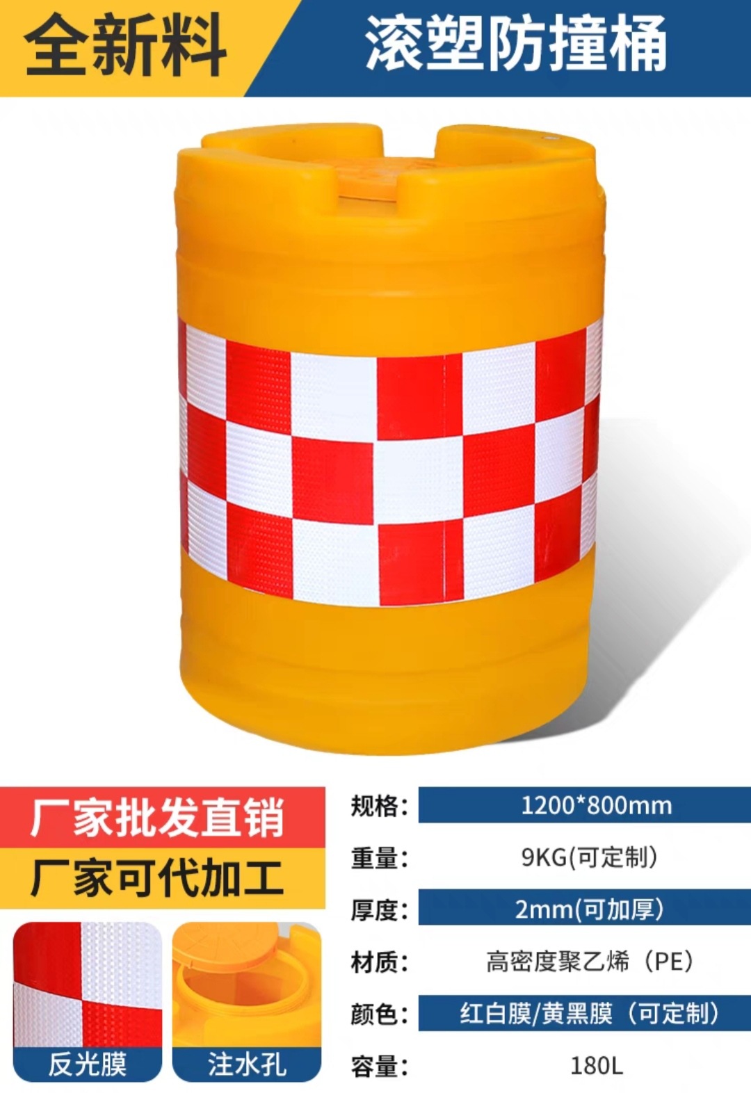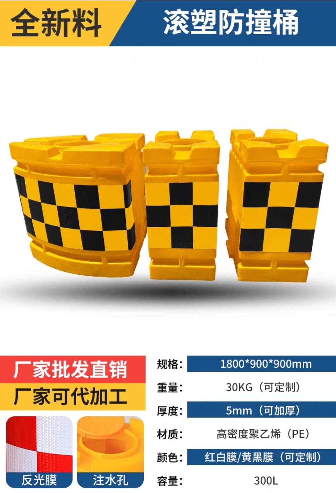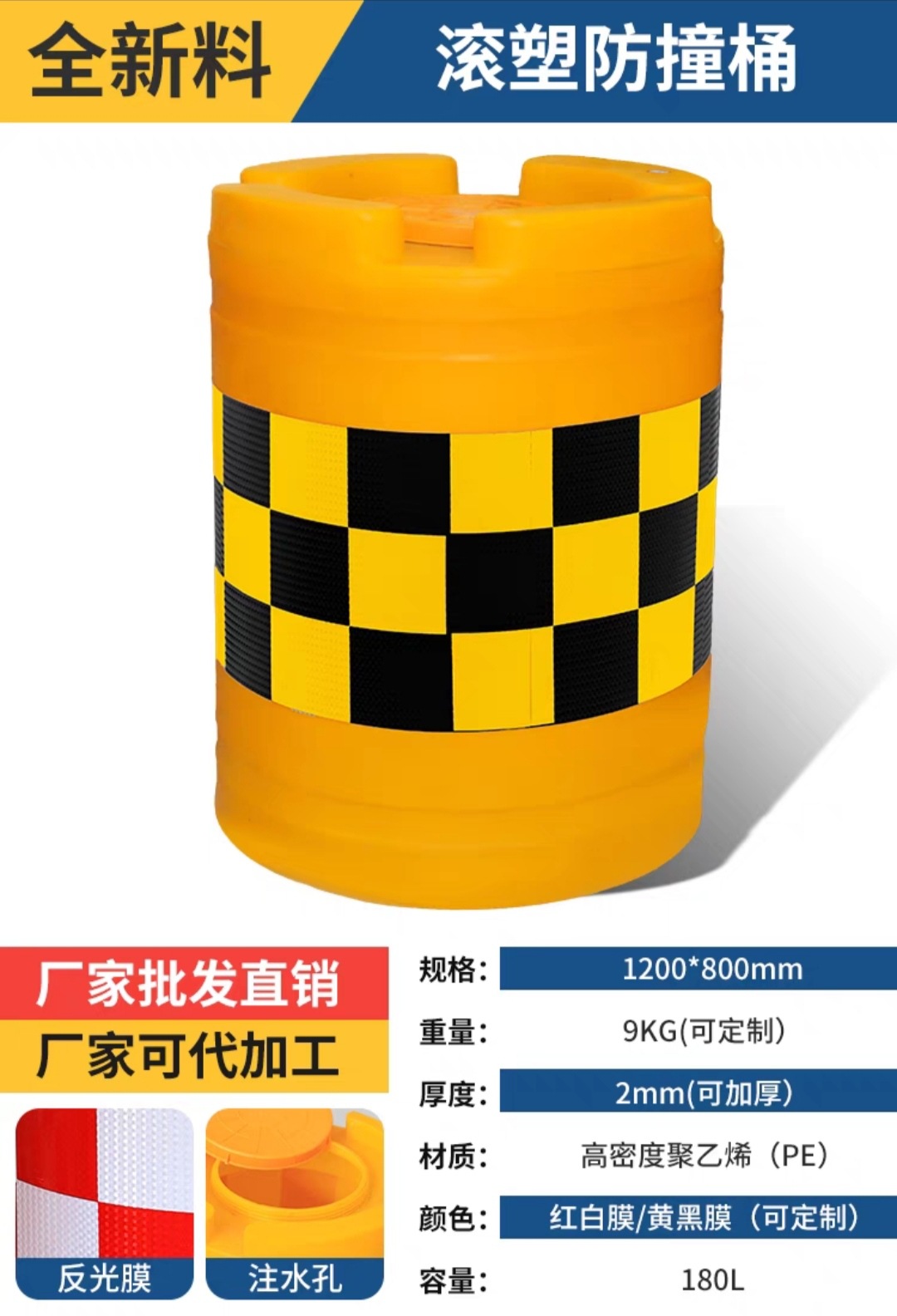 滚塑-1800*900*900mm-黄黑膜*红白 黑黄*PE**