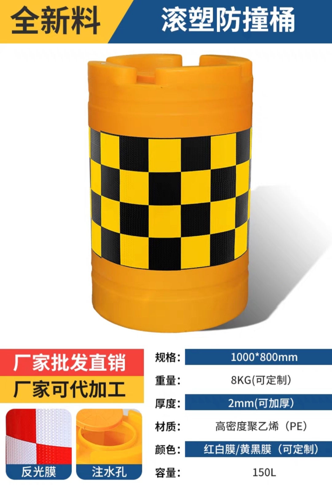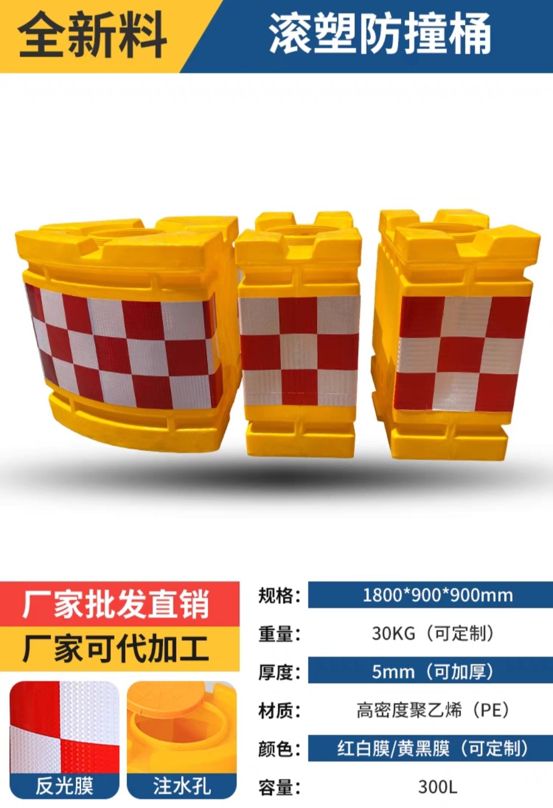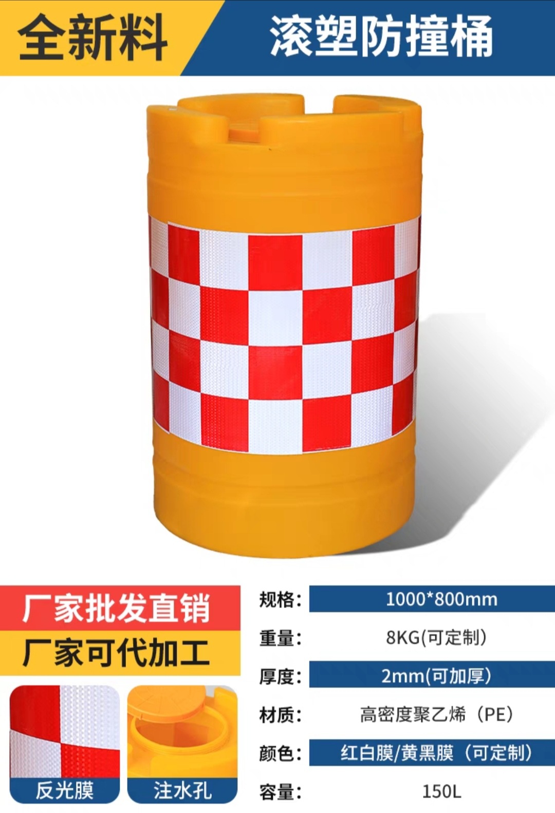 滚塑-1800*900*900mm-黄黑膜*红白 黑黄*PE**