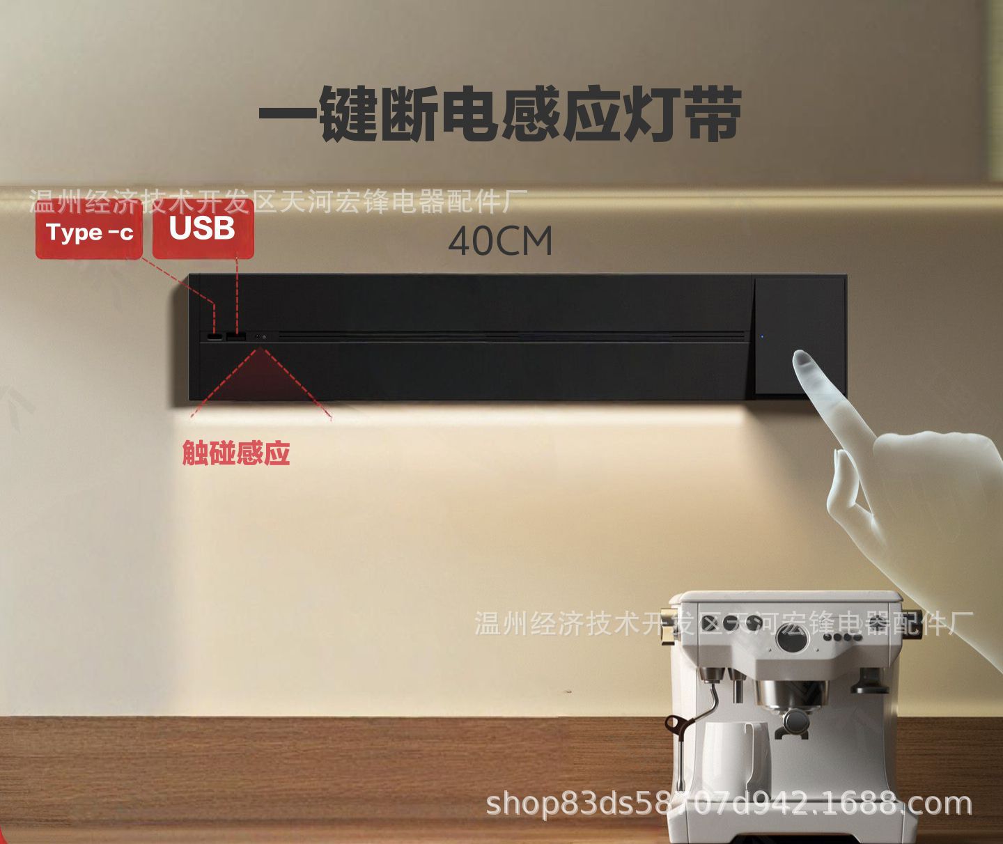 一键断电黑色感应灯带USB轨道40CM