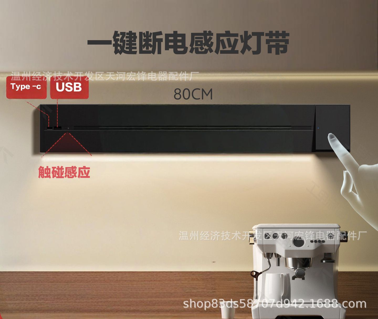 一键断电黑色感应灯带USB轨道80CM