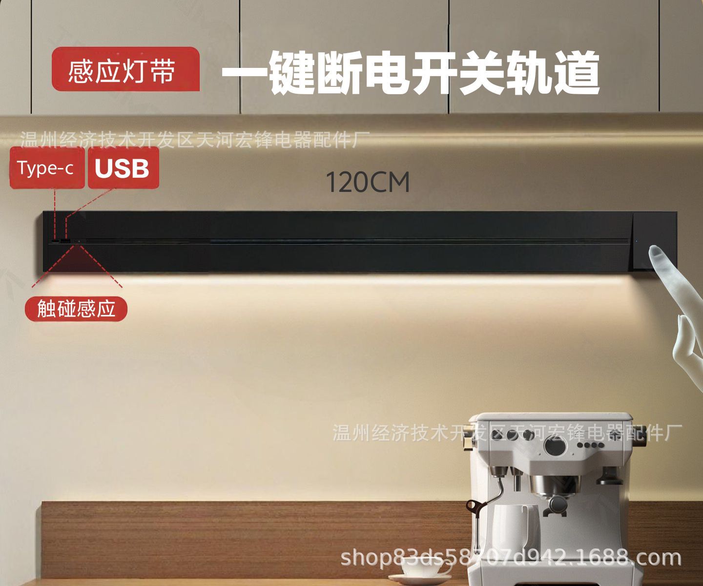 一键断电黑色感应灯带USB轨道120CM