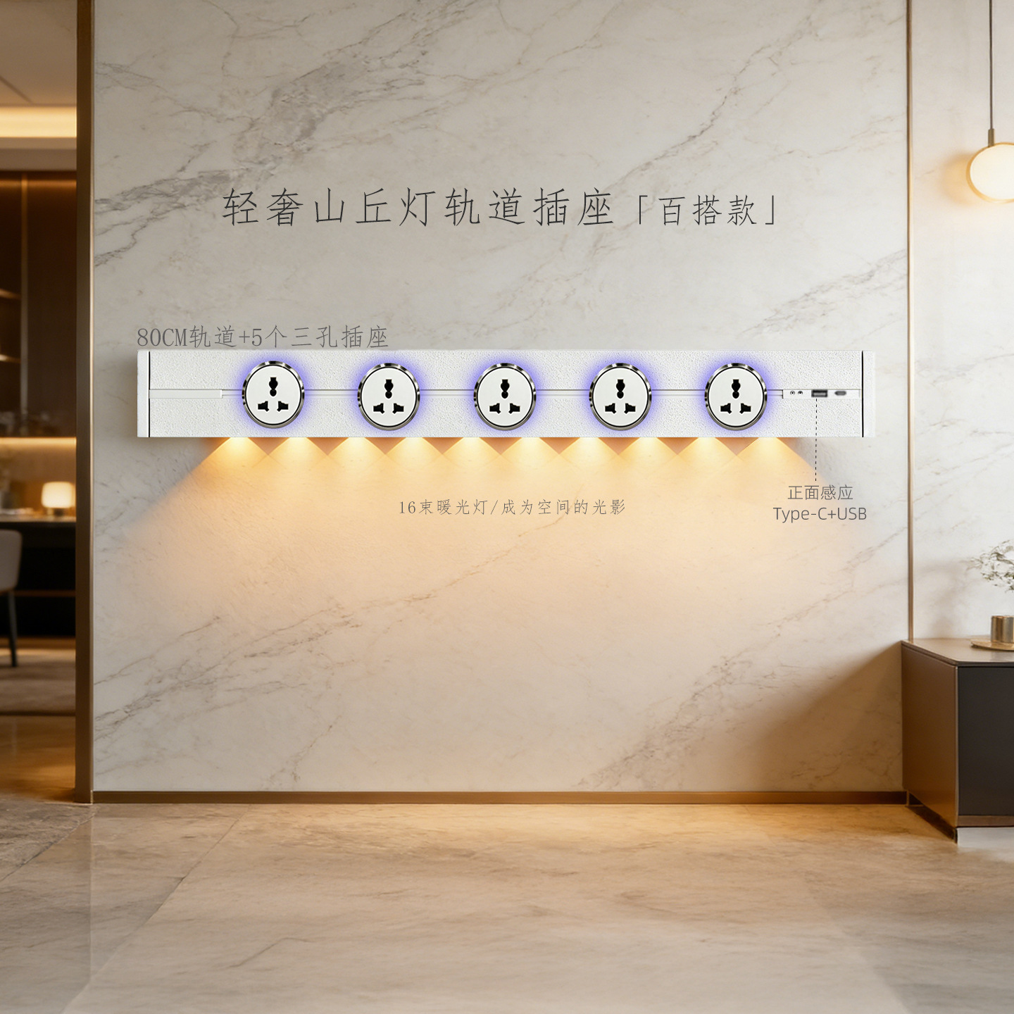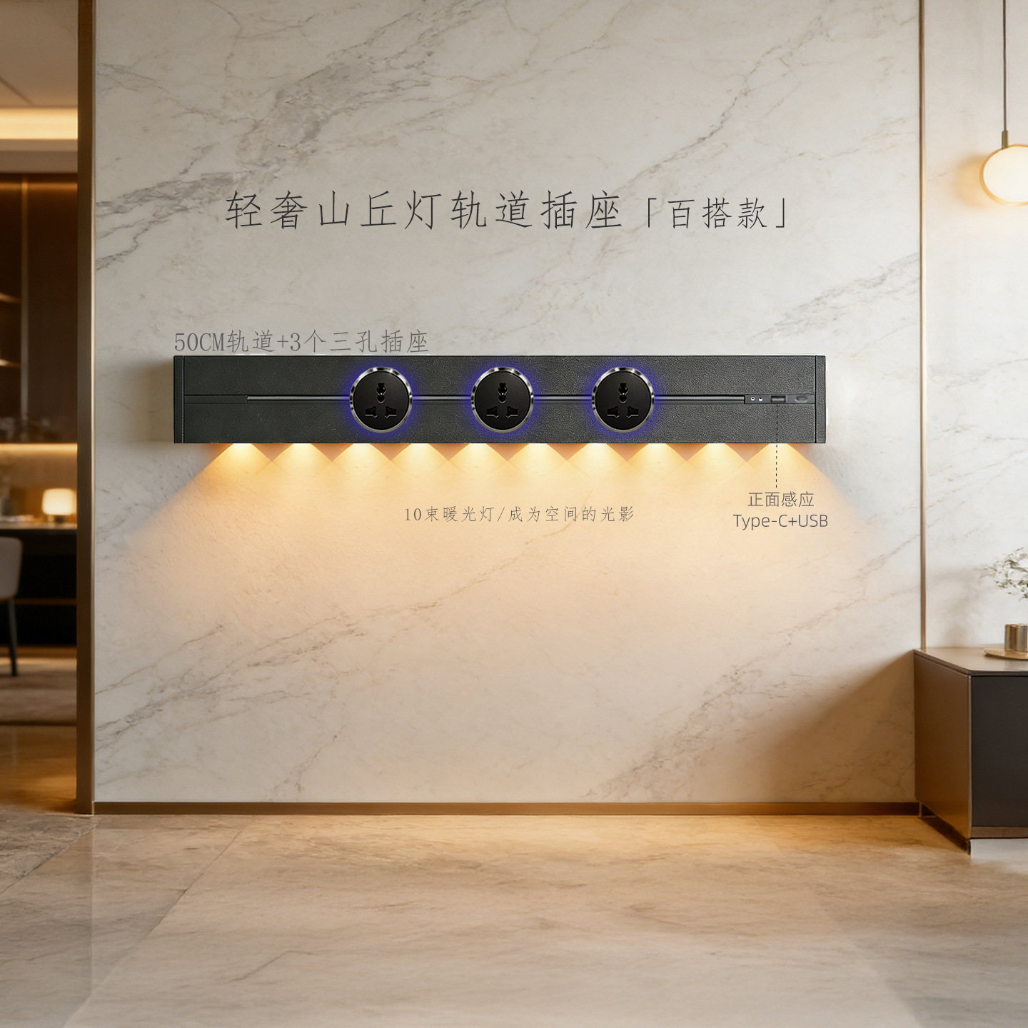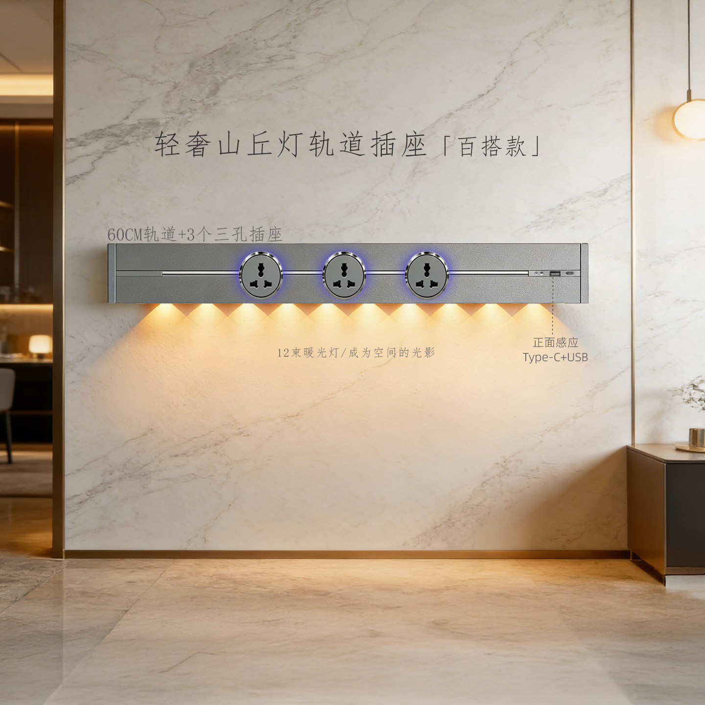 (感应柔光山丘灯)白色60CM轨道+3个蓝灯多三孔