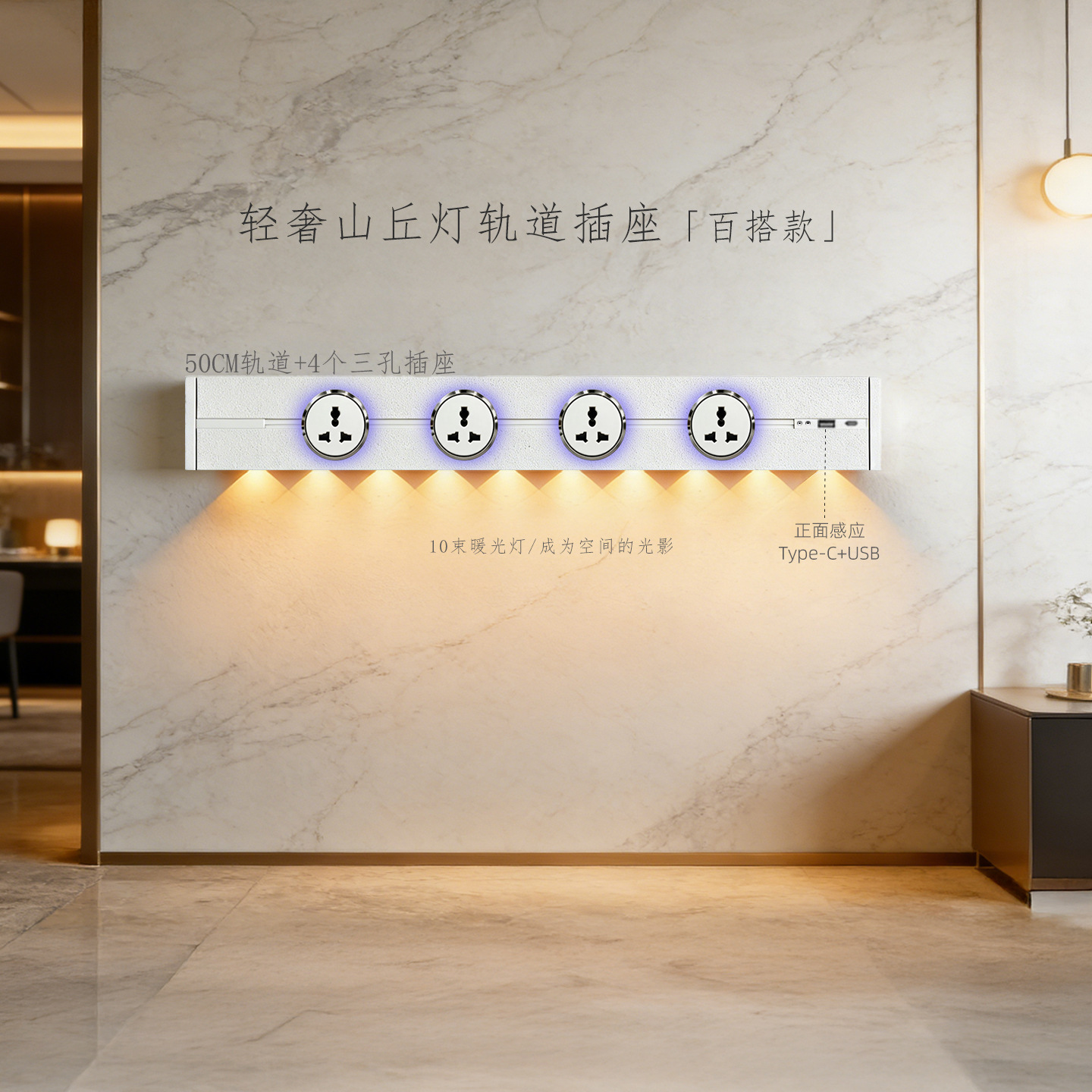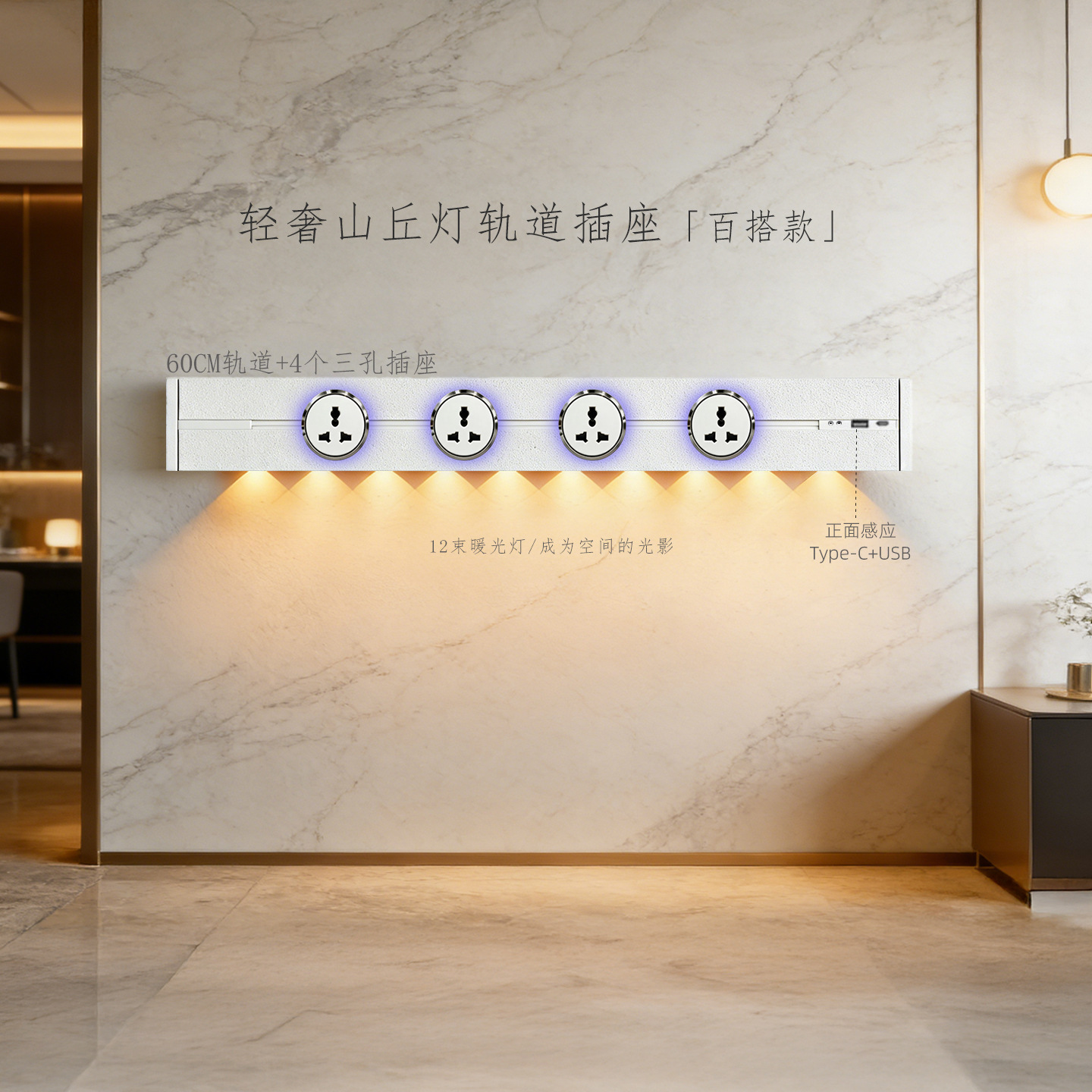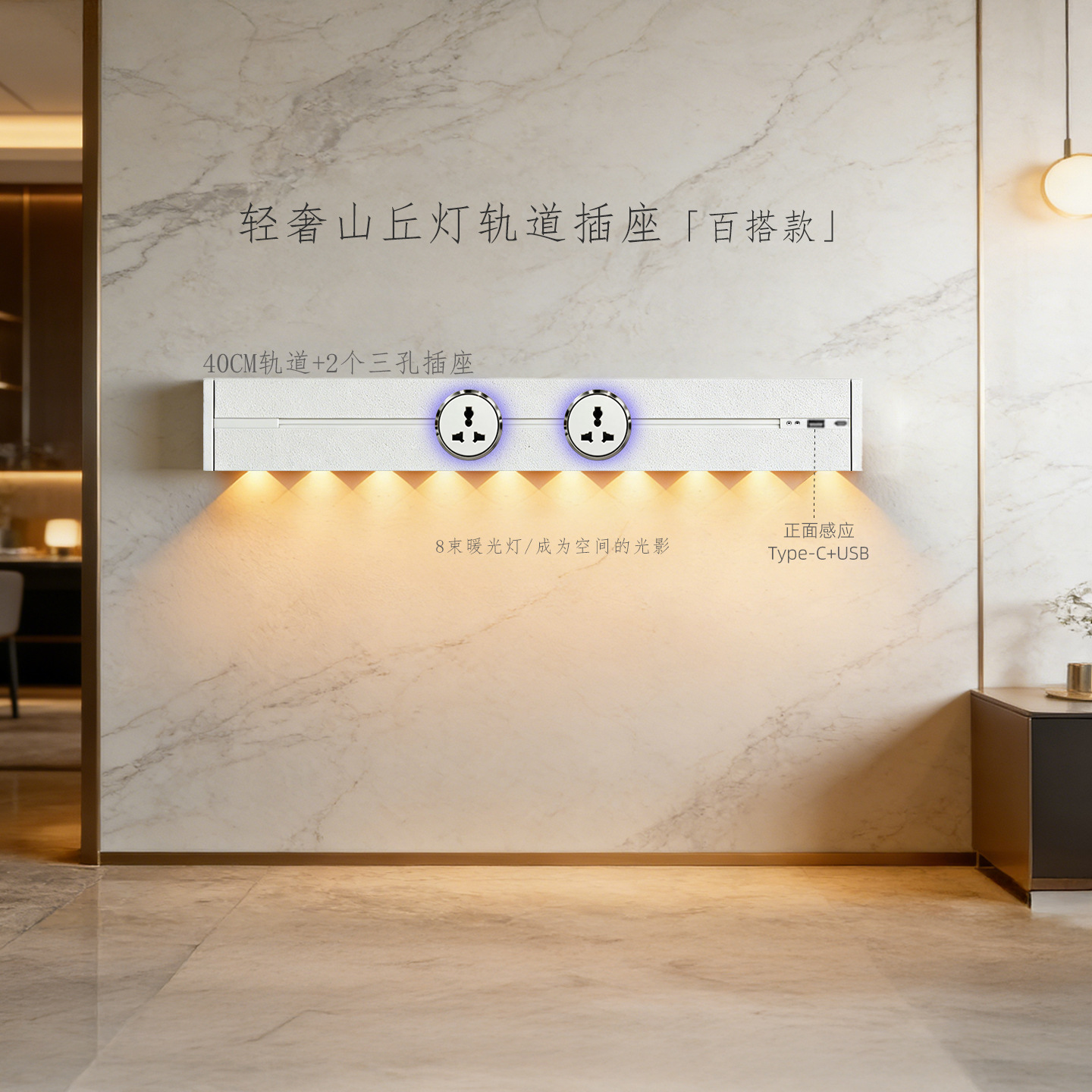 (感应柔光山丘灯)白色60CM轨道+3个蓝灯多三孔