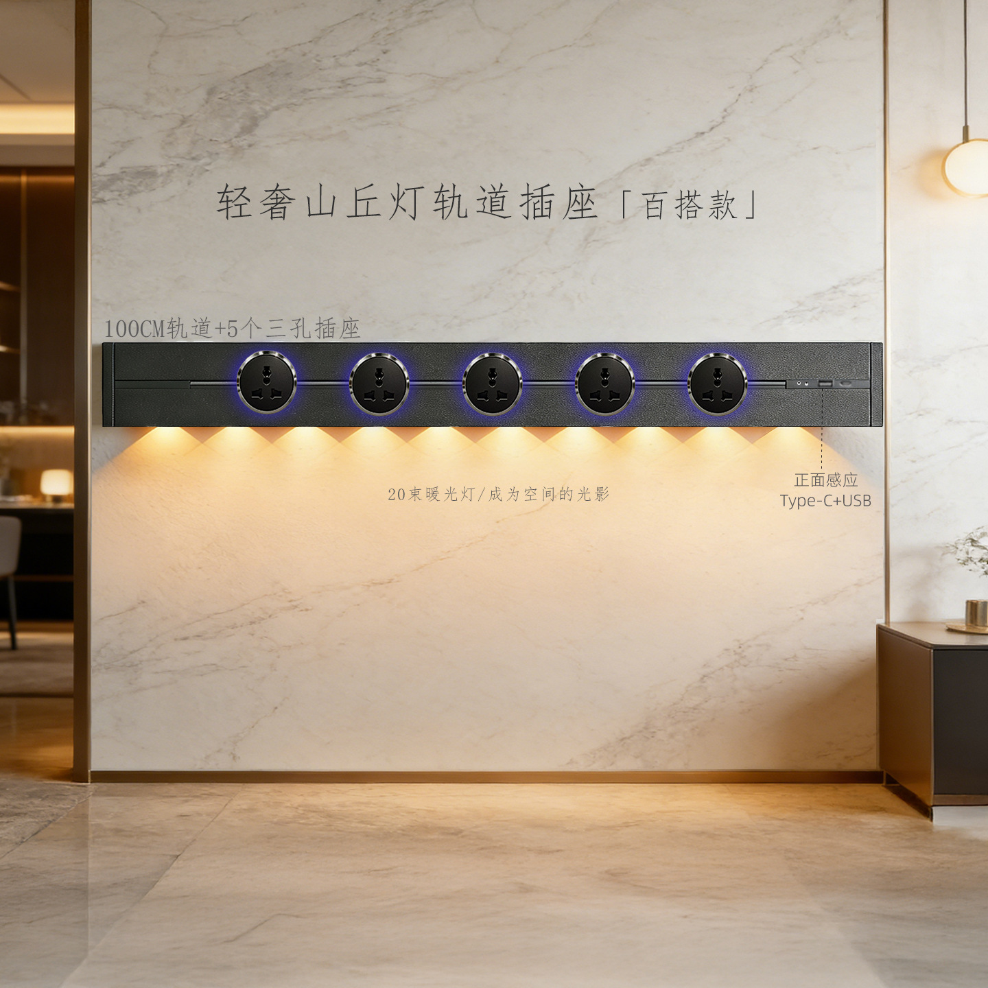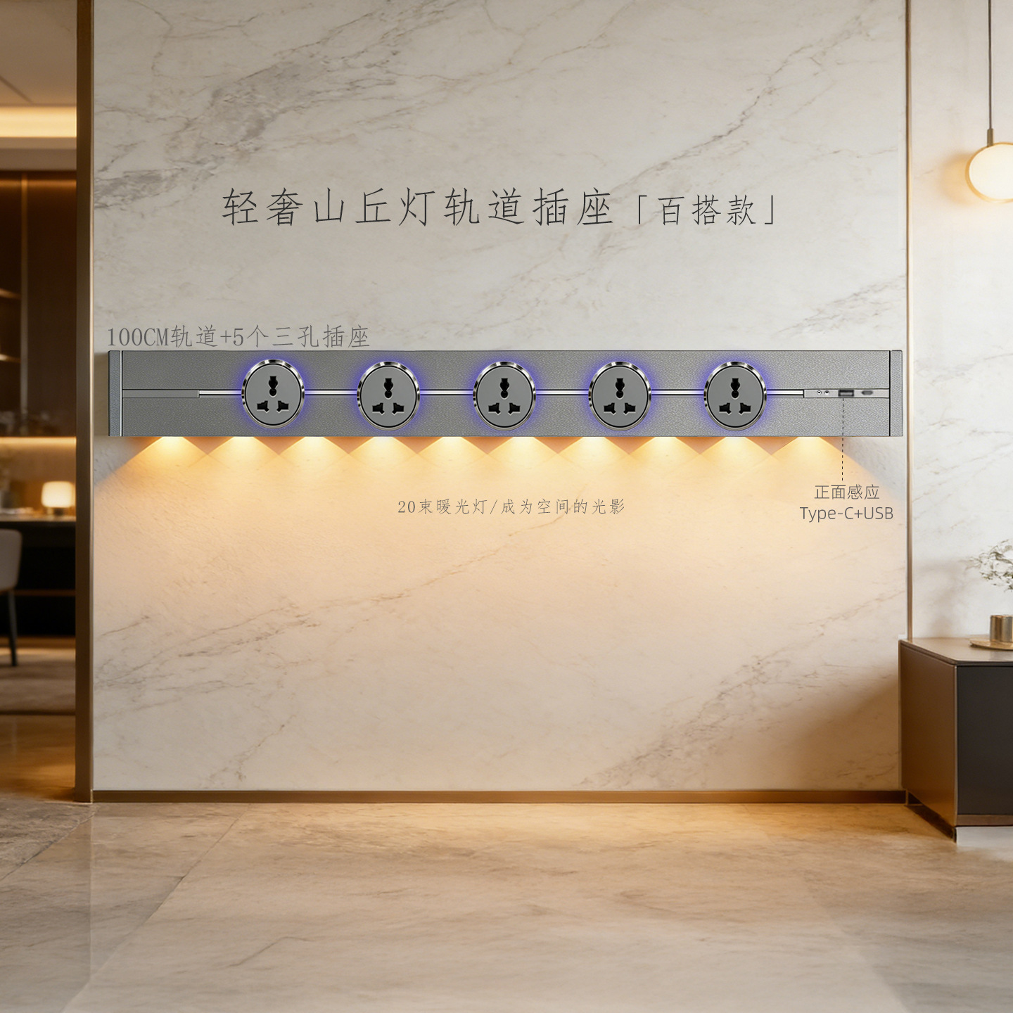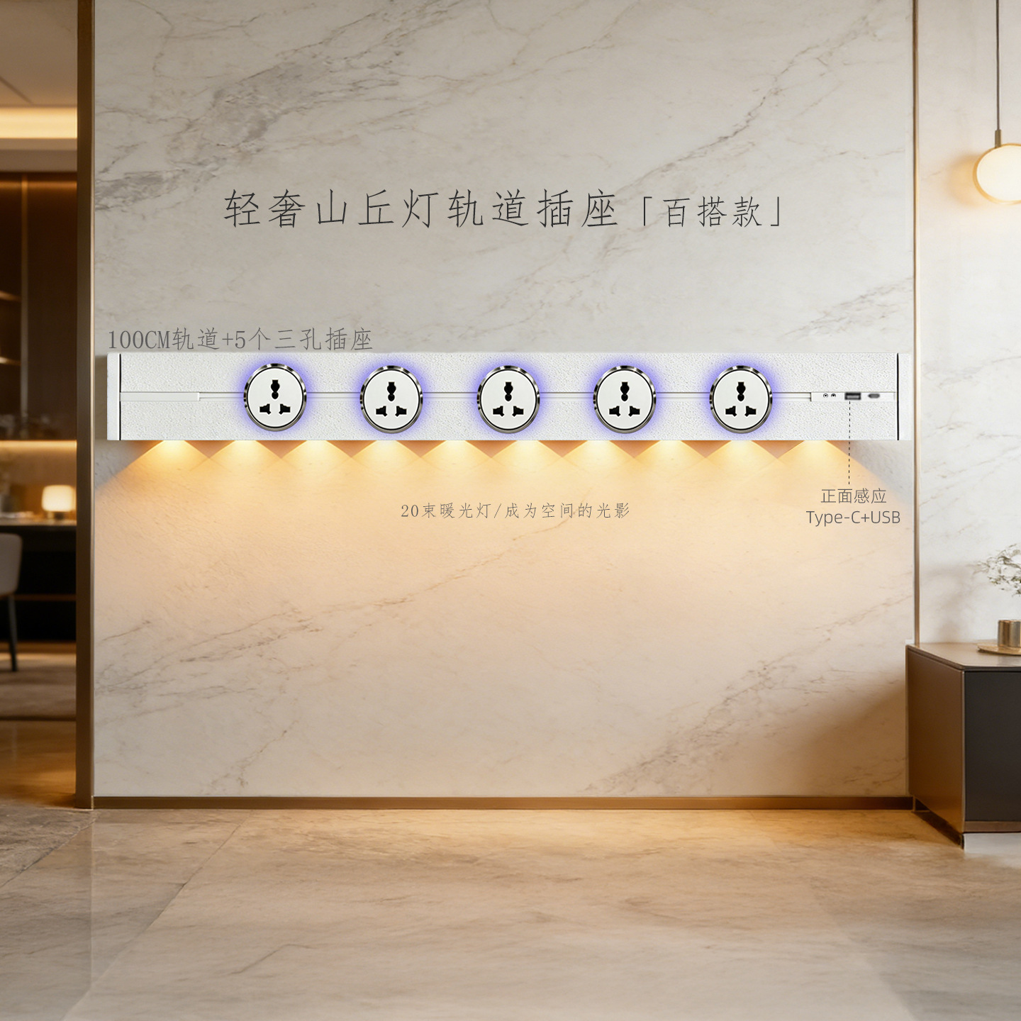 (感应柔光山丘灯)白色100CM轨道+5个蓝灯多三孔