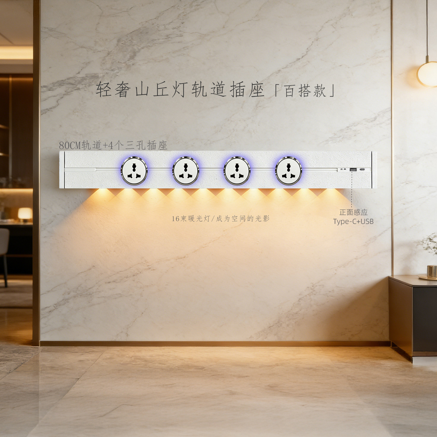 (感应柔光山丘灯)白色80CM轨道+4个蓝灯多三孔