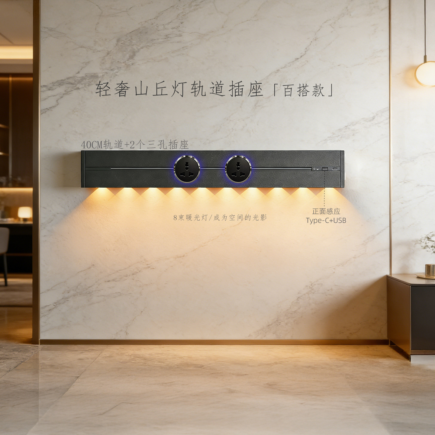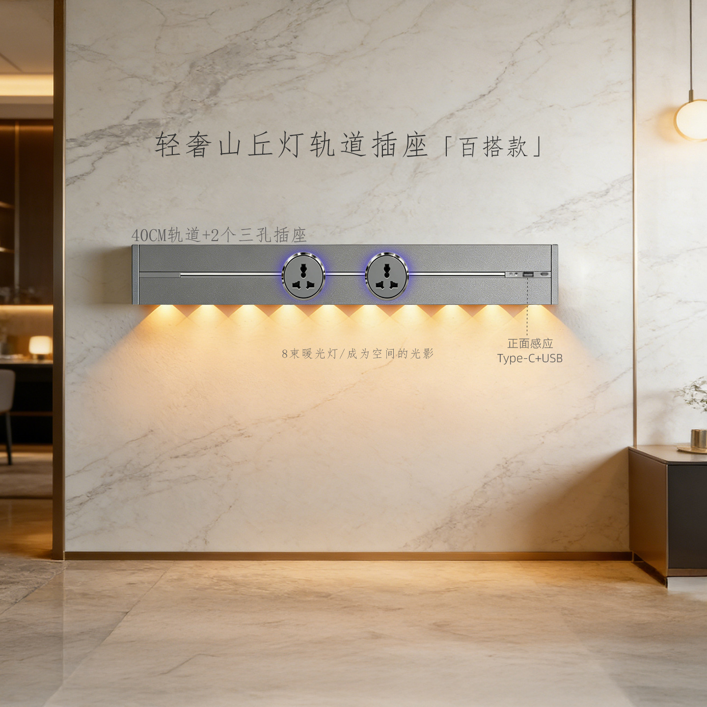(感应柔光山丘灯)灰色40CM轨道+2个蓝灯多三孔