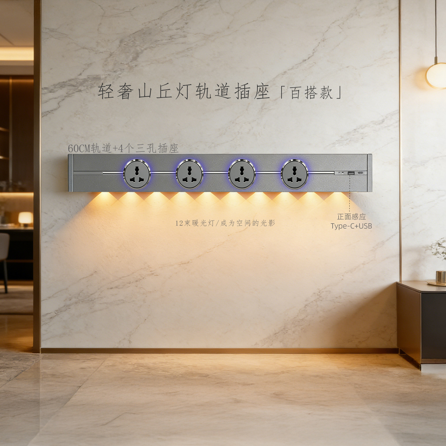 (感应柔光山丘灯)灰色60CM轨道+3个蓝灯多三孔