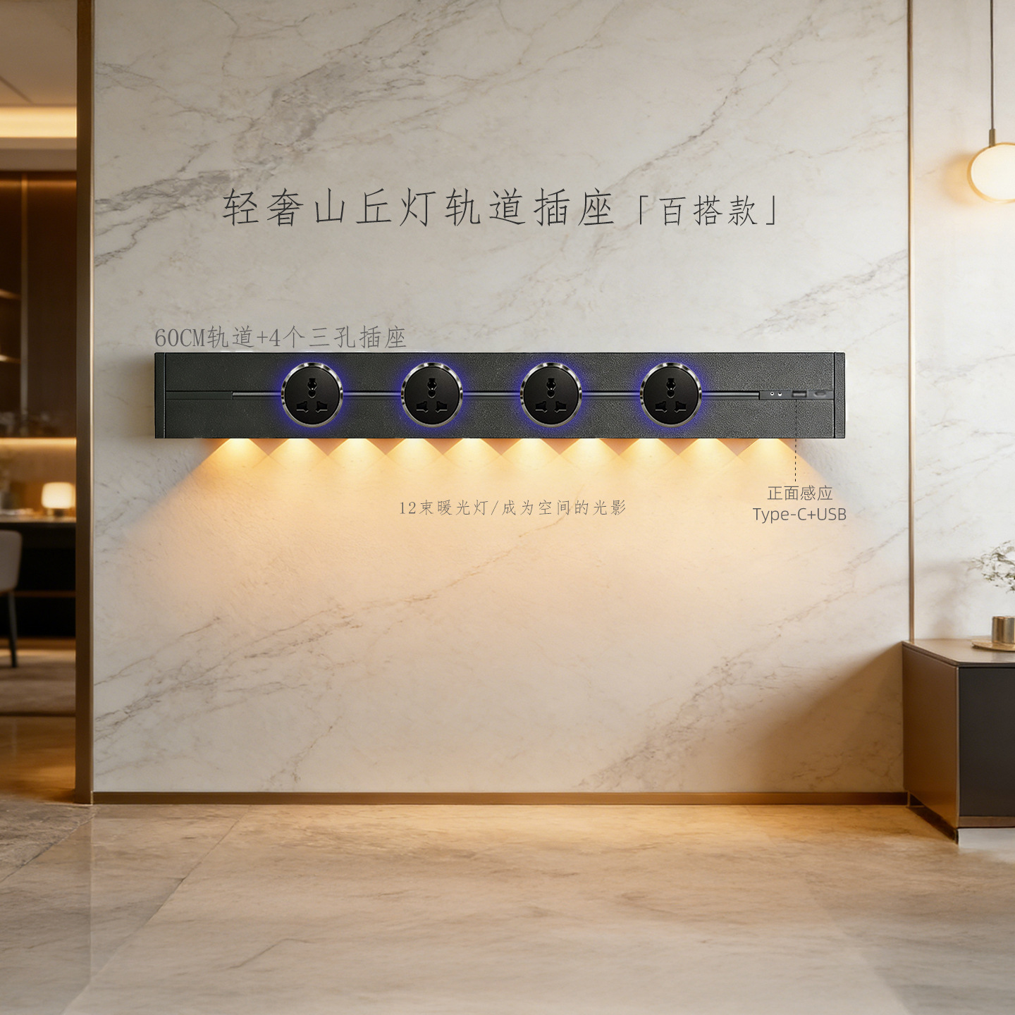 (感应柔光山丘灯)黑色60CM轨道+4个蓝灯多三孔