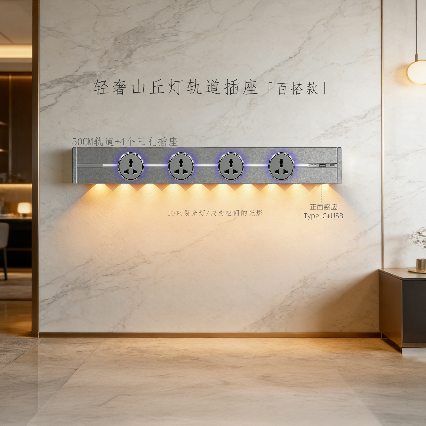 (感应柔光山丘灯)灰色50CM轨道+4个蓝灯多三孔
