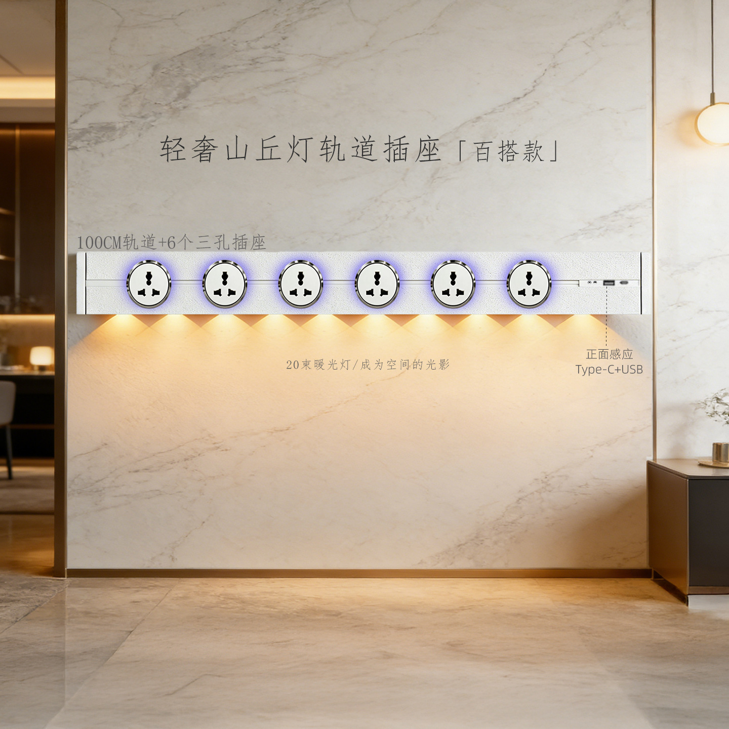 (感应柔光山丘灯)白色100CM轨道+6个蓝灯多三孔