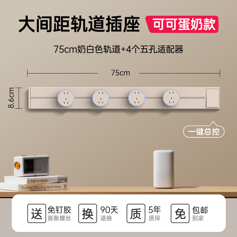 奶油色75CM轨道+5个蓝光大间距五孔插座