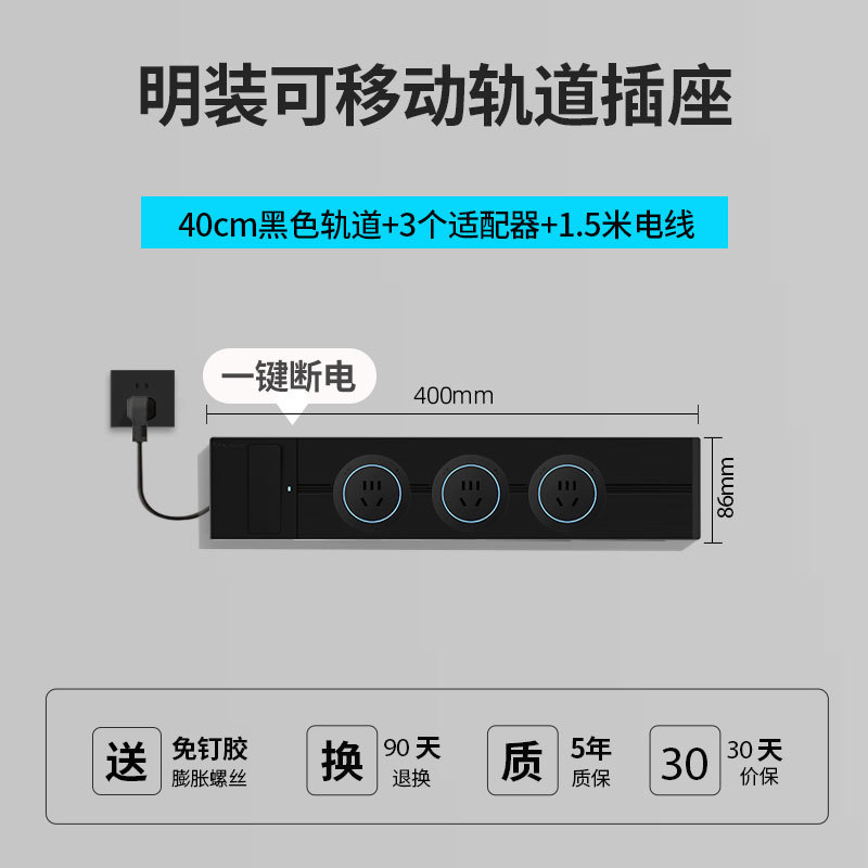 黑色30公分轨道3个五孔(送1.5米轨道)