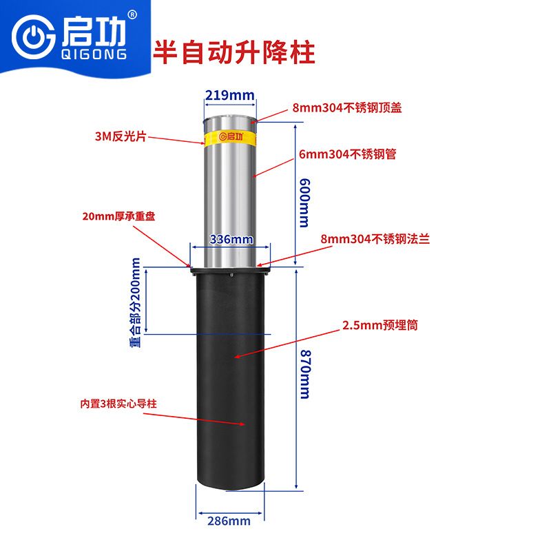 219半自动升降柱-【新款】双层受力圈加倍防护